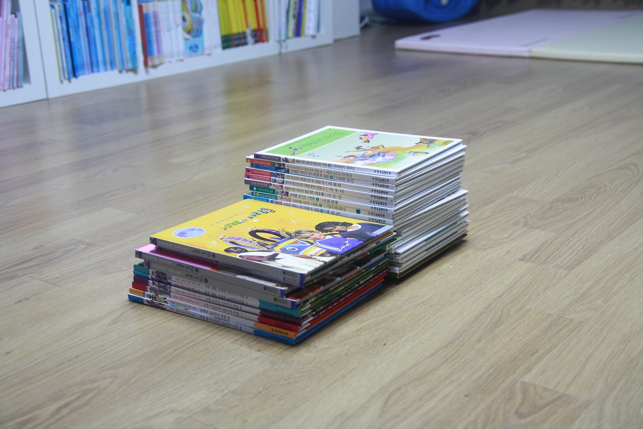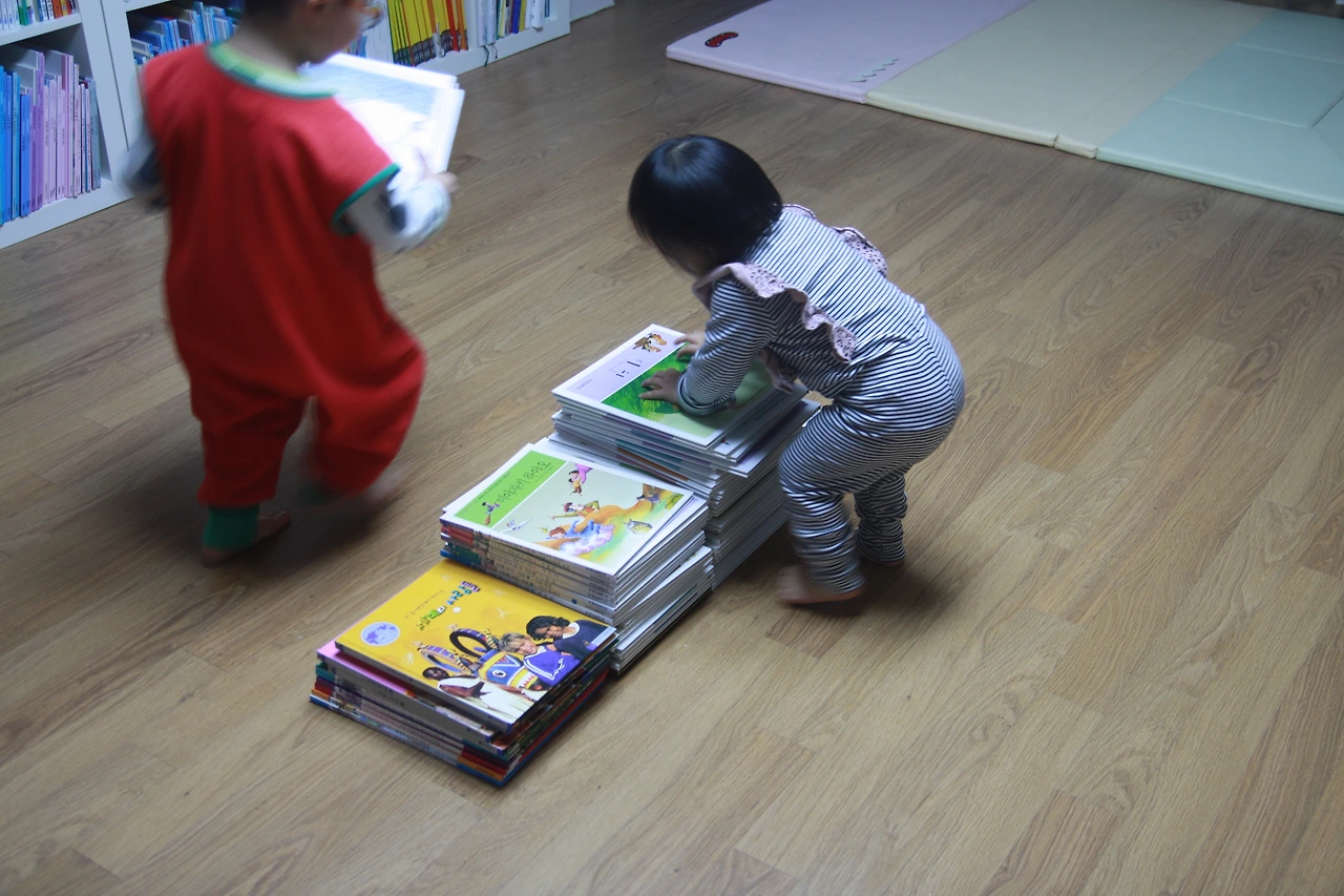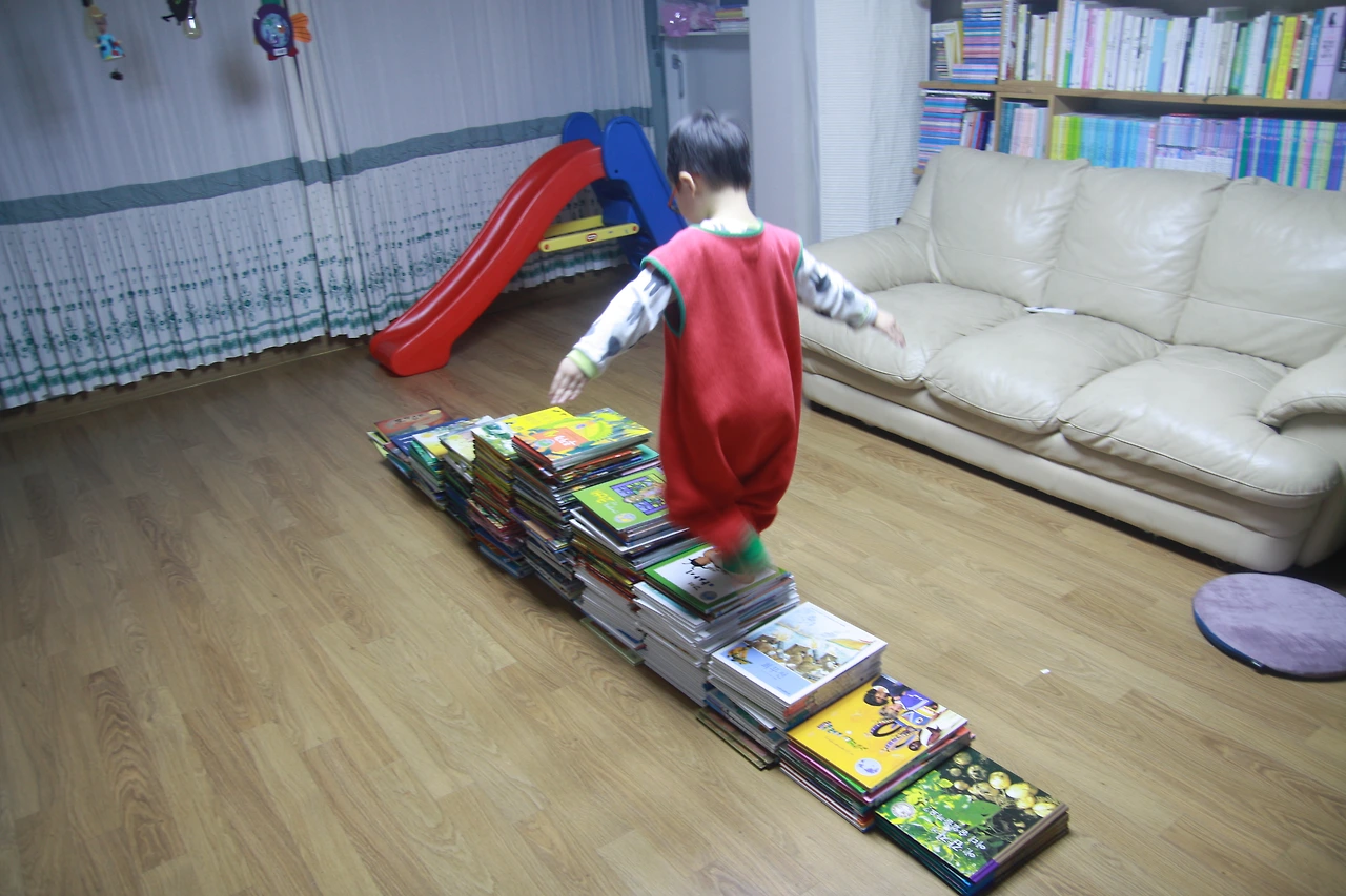 책을 점점 많이 쌓아서 계단을 만들 수도 있어요.