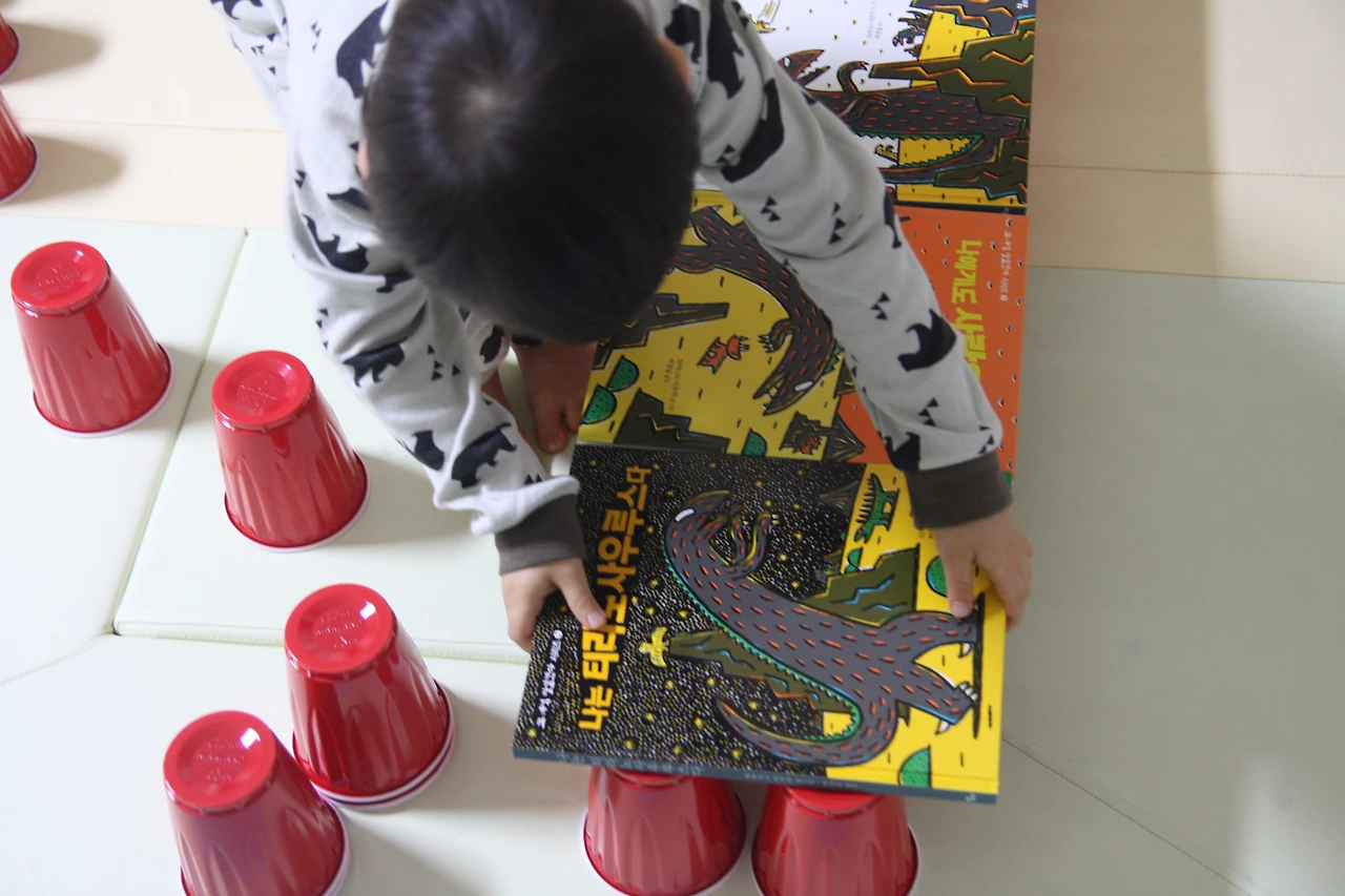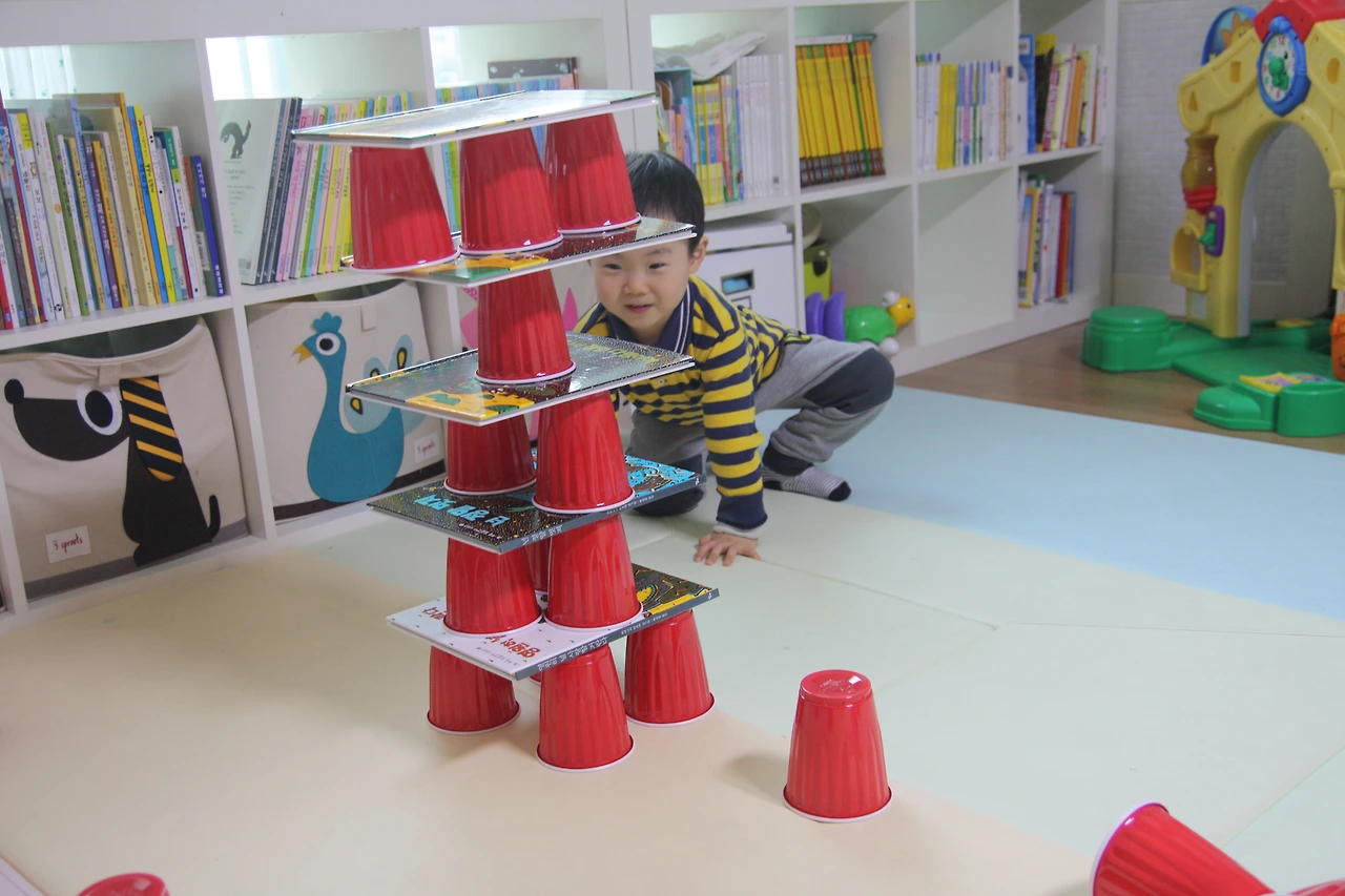 책놀이 1. 종이컵과 책으로 탑 쌓기