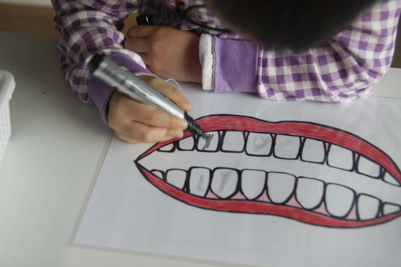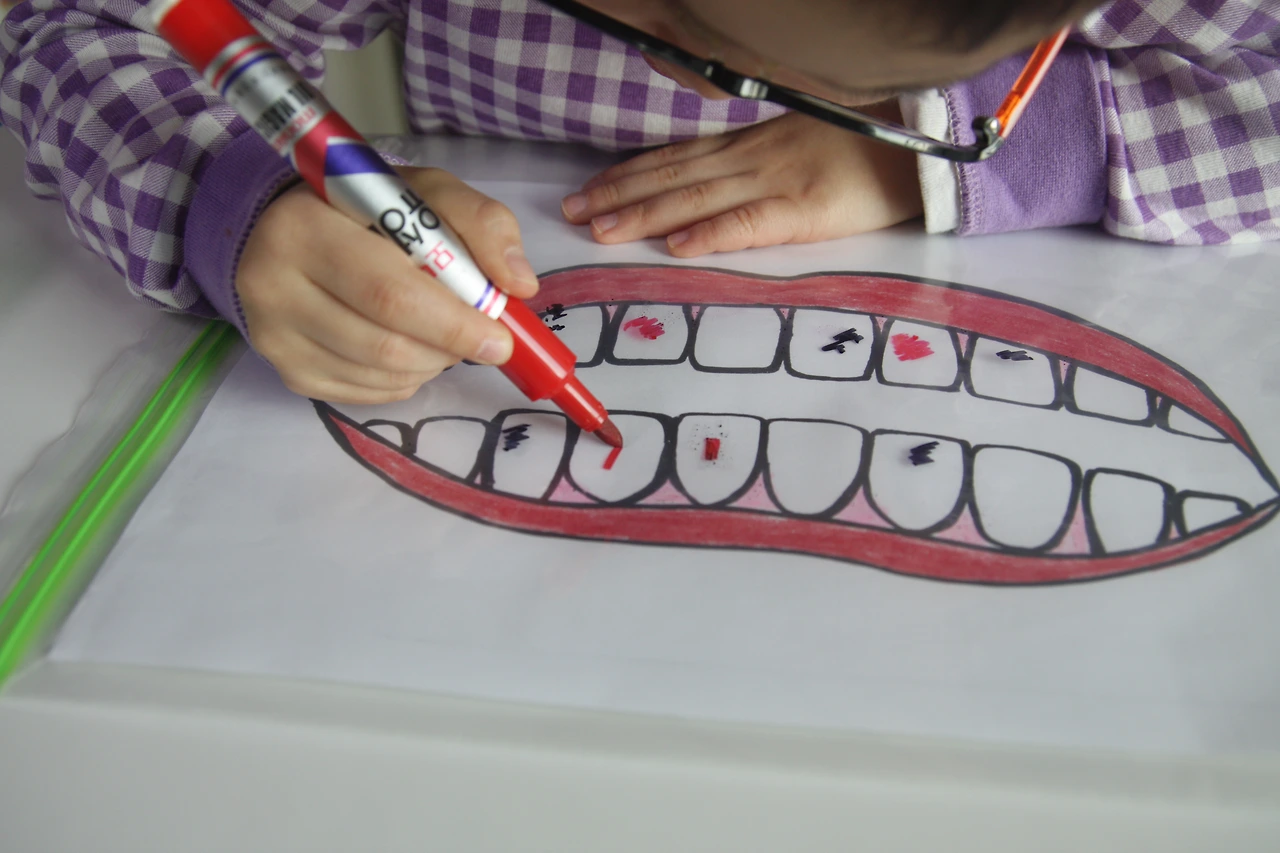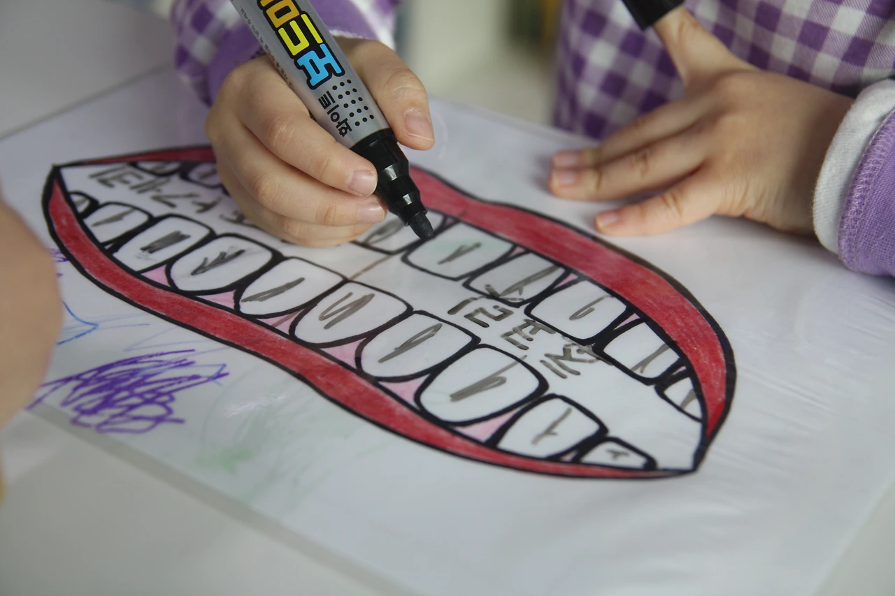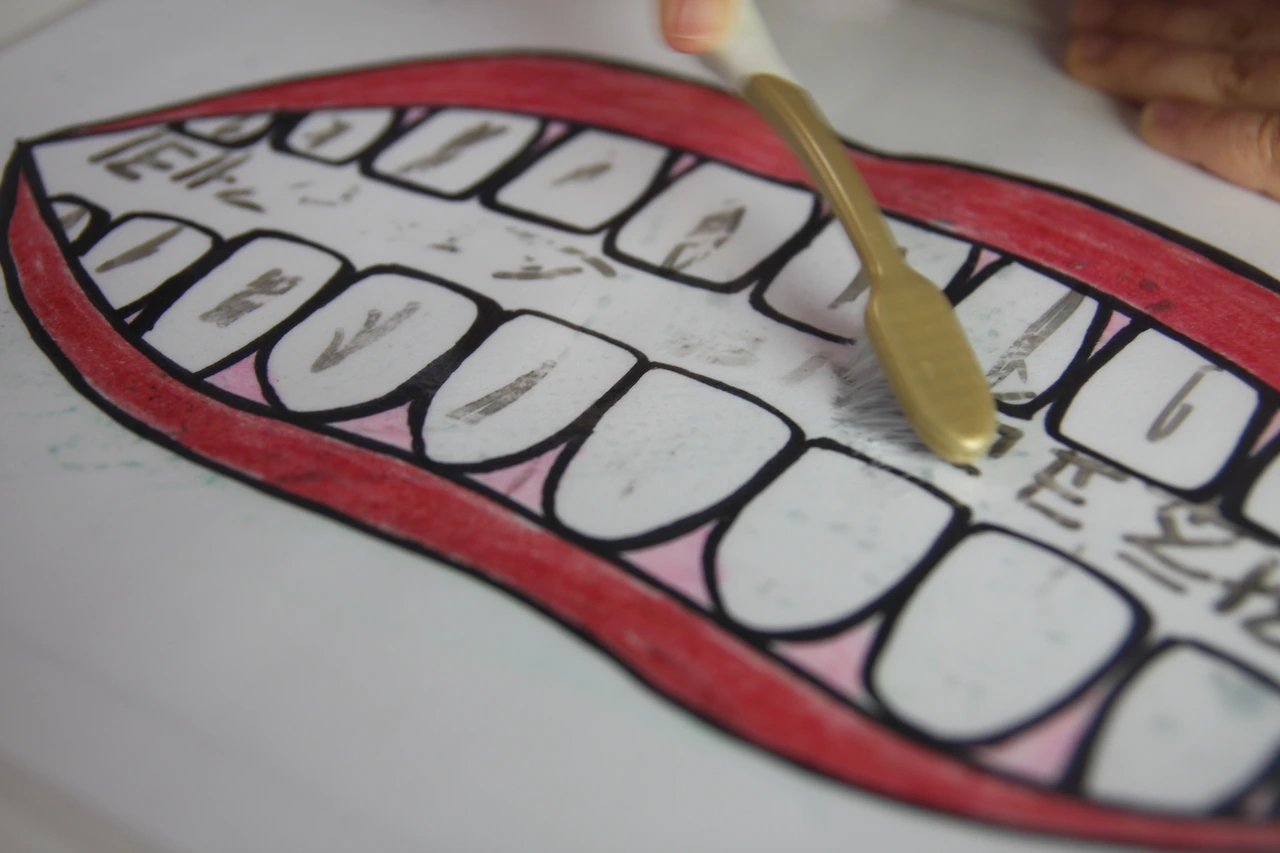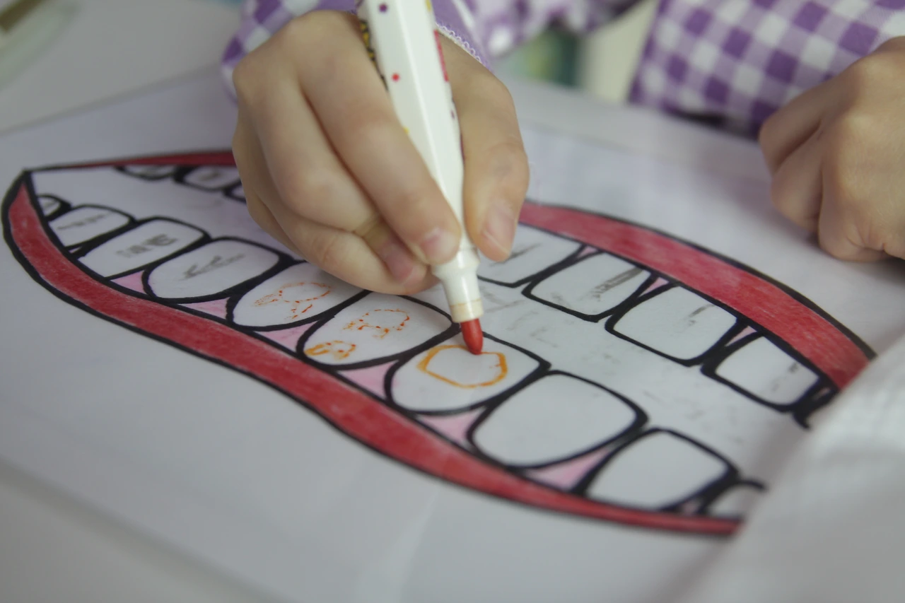 가지런한 치아를 자랑하는 남자아이나 여자아이의 얼굴을 함께 그려주면 더 좋을테지만