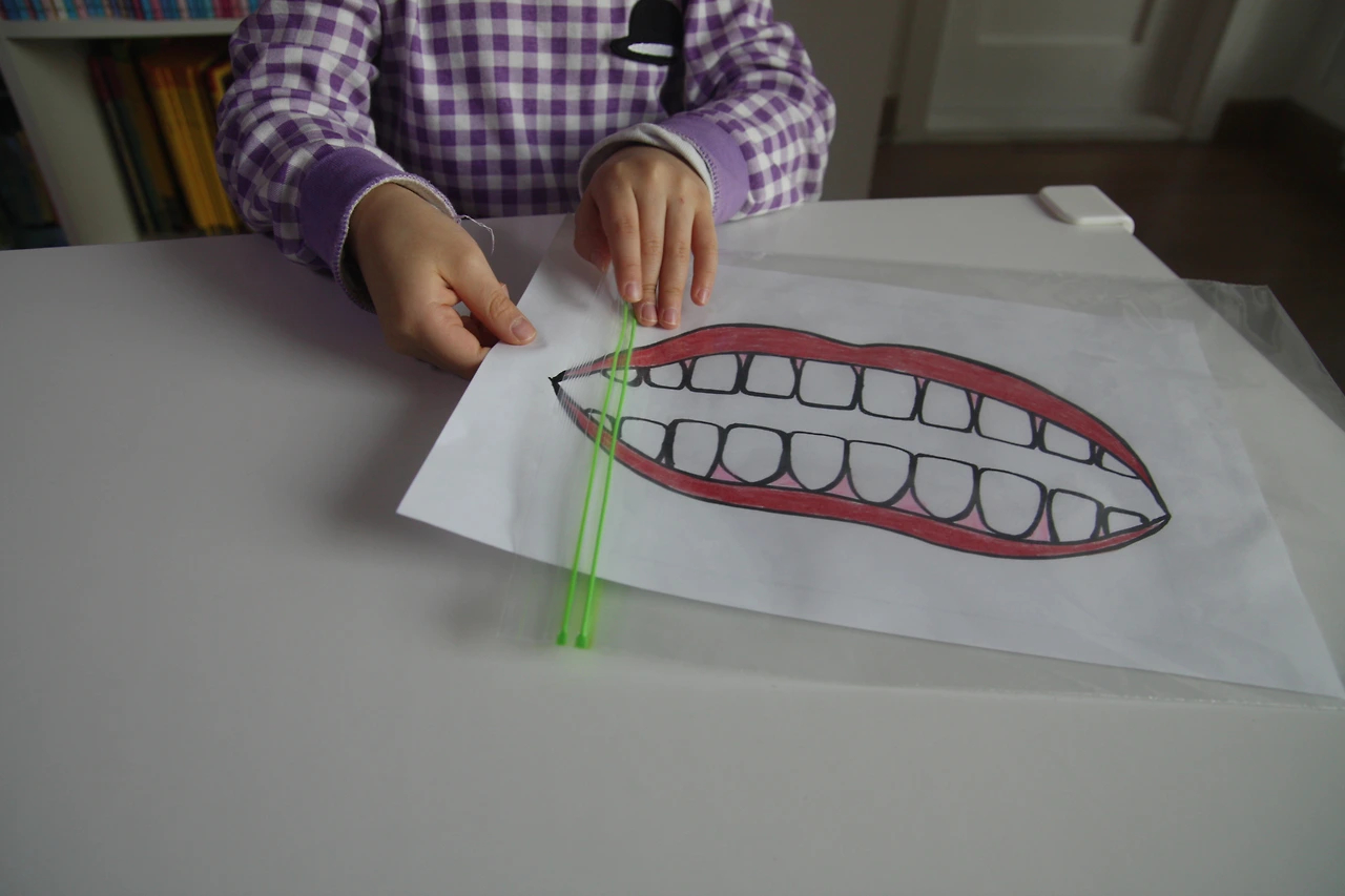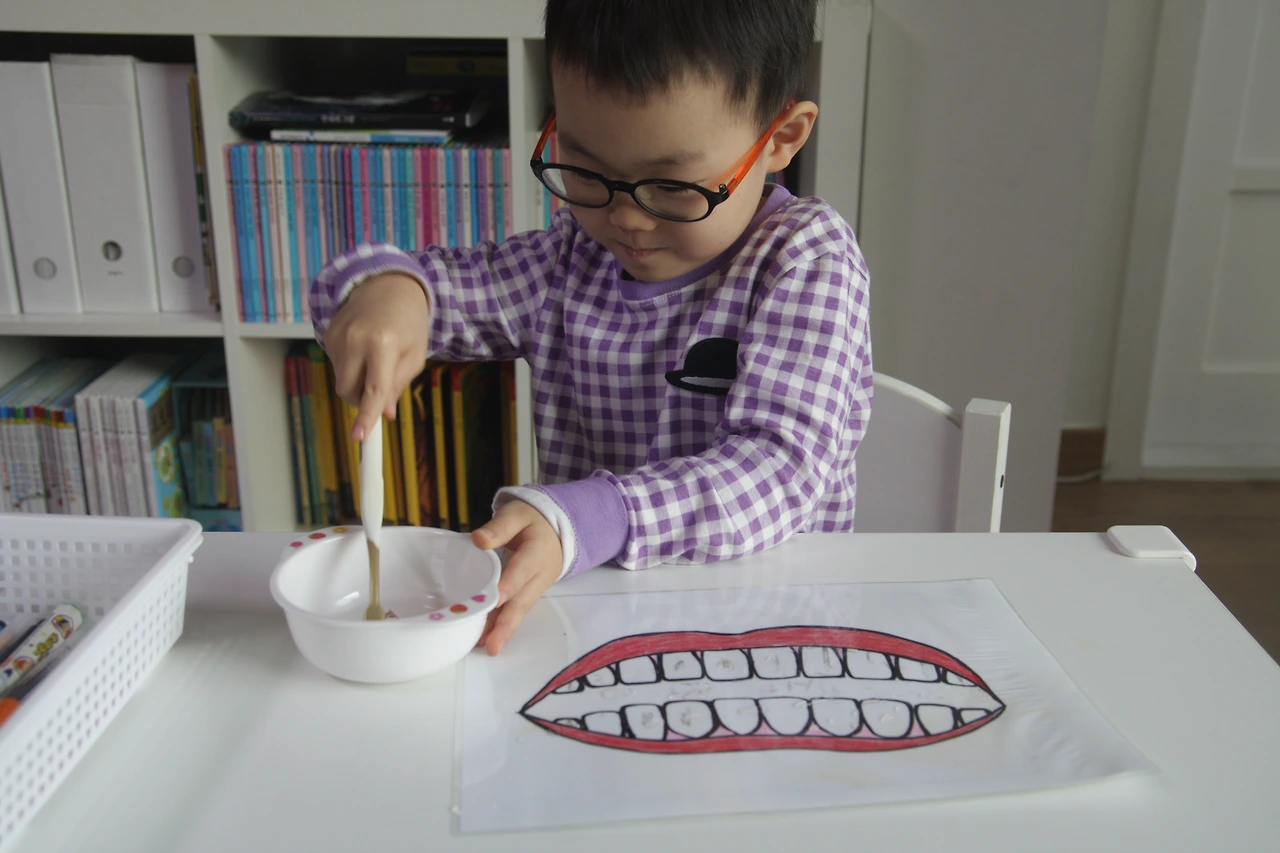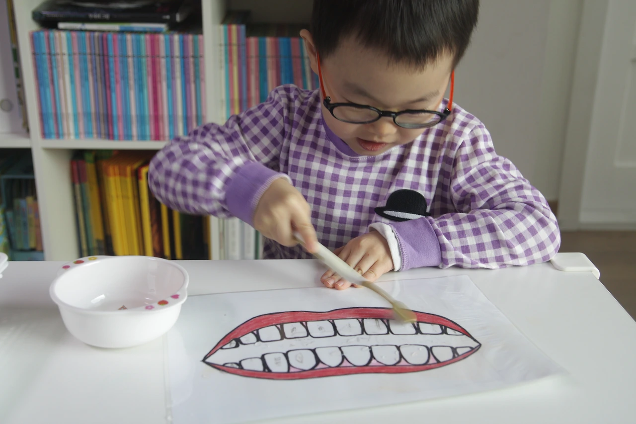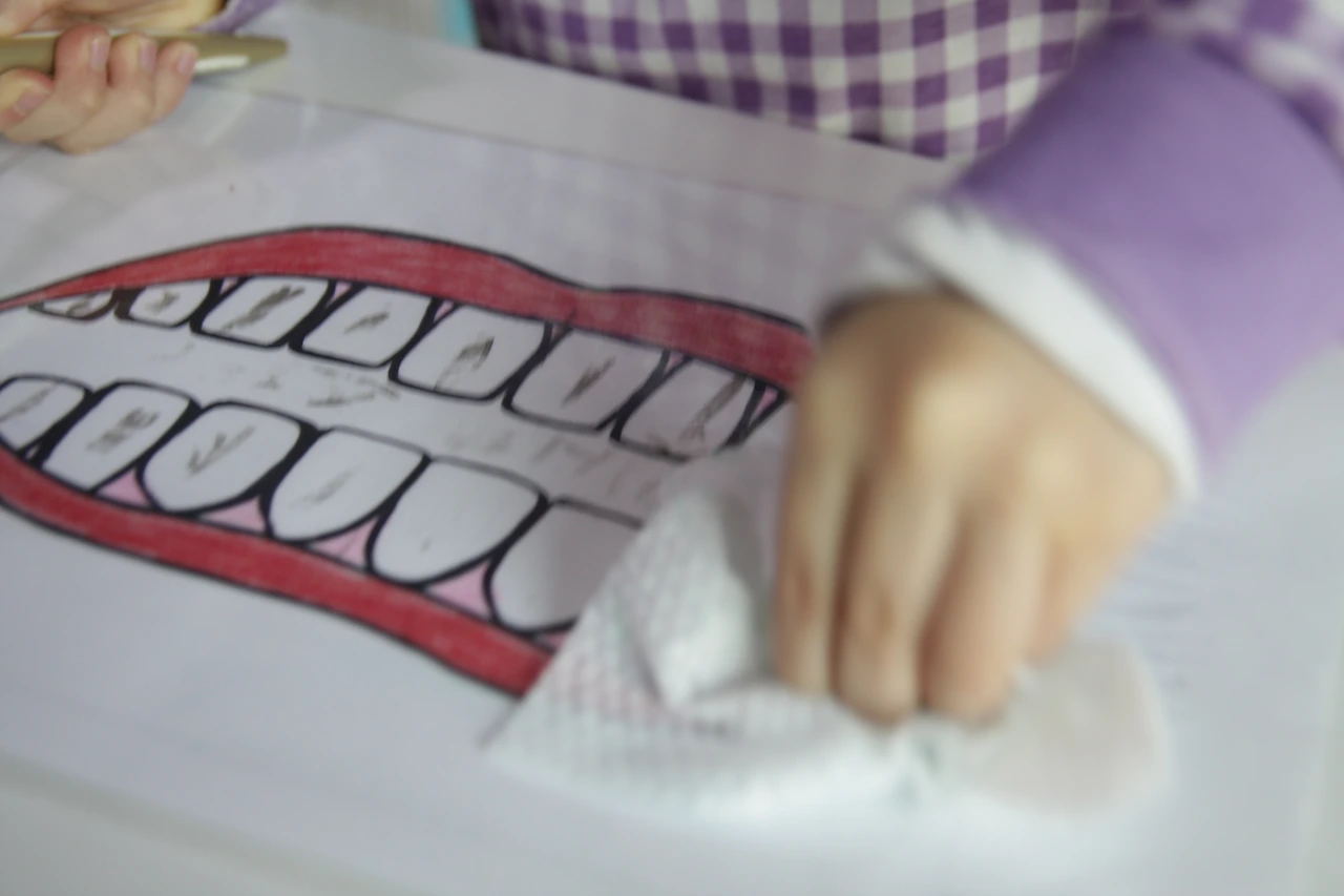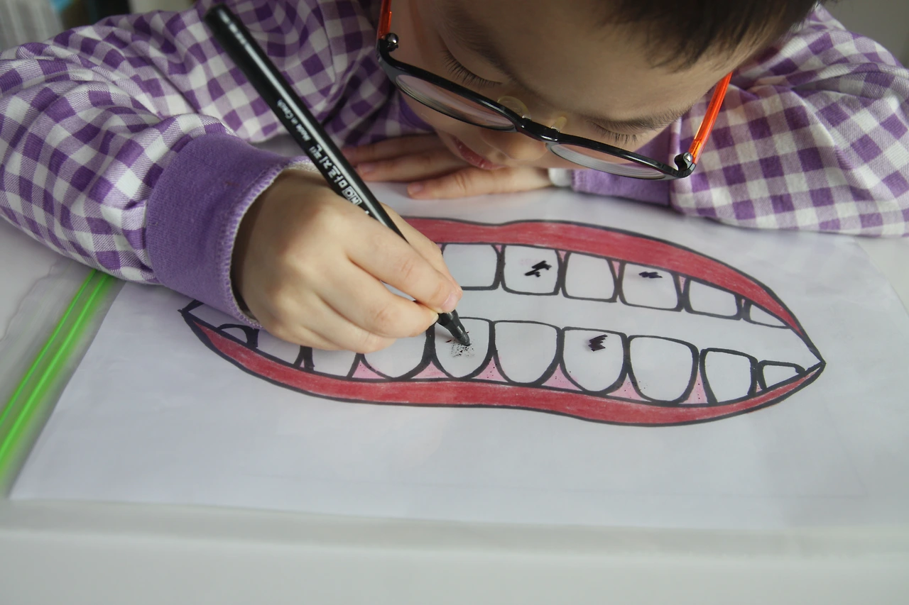 가지런한 치아를 자랑하는 남자아이나 여자아이의 얼굴을 함께 그려주면 더 좋을테지만