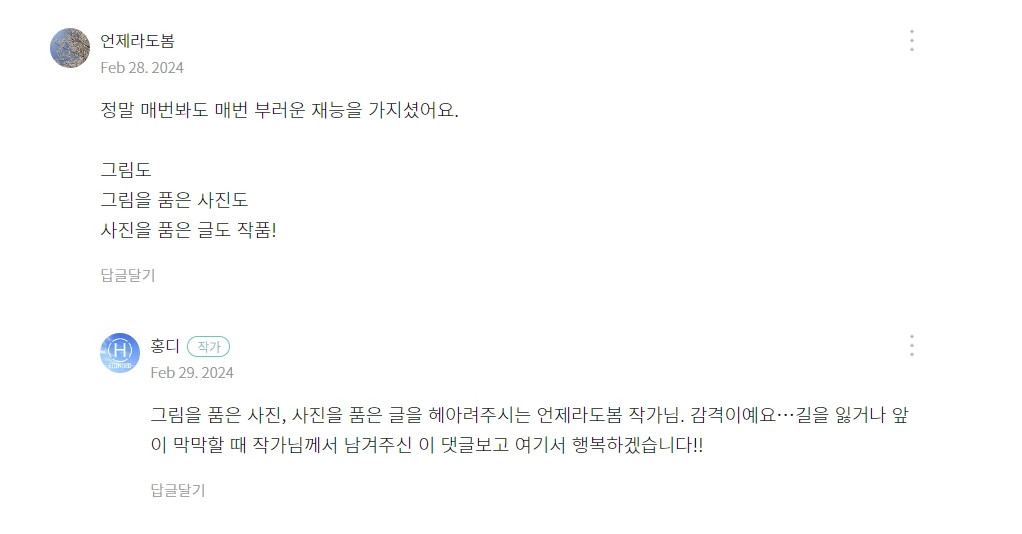 홍디님 글 '지금 여기서 행복할 것'에 남긴 나의 부러움