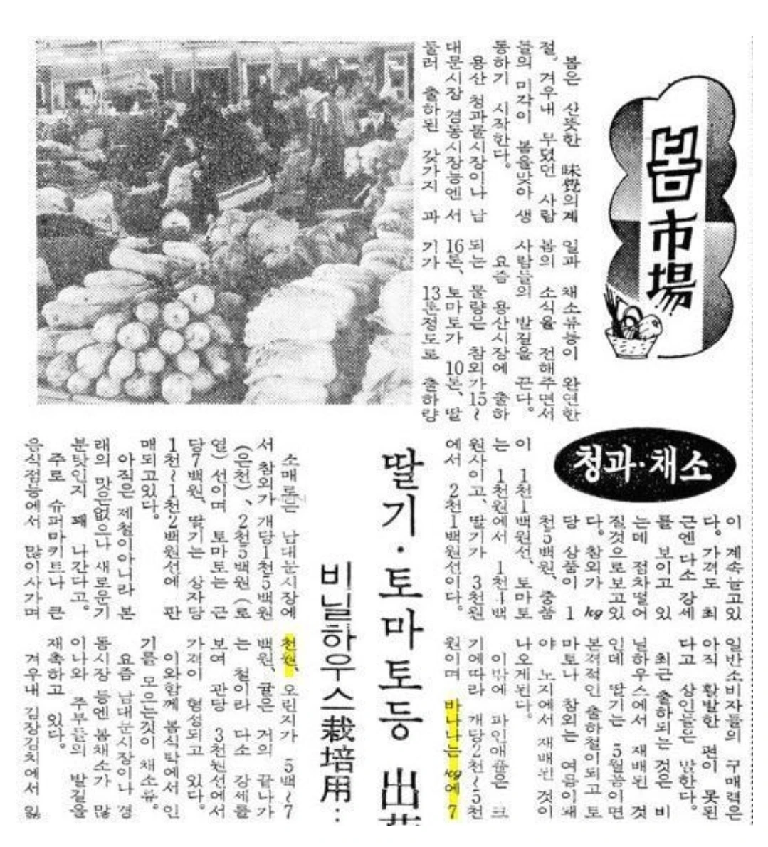 정확한 가격은 기억이 안 나지만 내가 어릴 적 바나나는 병원에 입원해서 엄마가 "뭐 먹고 싶은 건 없어?"하고 물어보면 맥 빠진 목소리로 "바나나요."라고 답해야 먹을 수 있을까 말까 한 것이었다. 장염에 걸렸던 그때도 퇴원 즘 내 것 두 개 동생 거 한 개 그렇게 세 개만 사 오셨던 듯하다. 대략적인 느낌으로 80년대 내가 초등학생일 때 바나나 한 송이는 지금 값어치로 10만 원도 넘는 가치일듯하다 했더니 MZ들은 안 믿는다. 나의 이야기를 듣는 그녀들의 눈을 보니 마치 한국전쟁에 참전했던 썰을 풀고 있는 기분이다. 검색창을 열고 물가 자료를 찾아보니 1984년 짜장면이 600-700원 정도일 때 1.5킬로짜리 한송이가 만원이 넘었다고 한다. 짜장면이 지금 7천 원 하는 곳 찾기 쉽지 않으니 10만원즈음이란 내 느낌이 거의 정확하다. 구체적인 숫자만큼이나 감각적 기억이 놀라울 때가 있다. 신문 사진도 국사교과서 사료 같다고 한다. 나에겐 또렷한 추억이 그녀들에겐 근대사구나.
