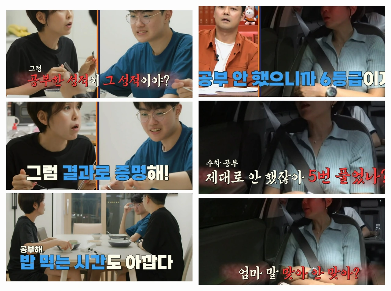 "니 심각성을 좀 알았나? 니 점수로는 갈 대학이 없데. 공부를 안 했으니깐 그런 거 아니냐고. 경찰대가 문과라고 생각해서 수학을 안 했나? 수학을 어떻게 하면 좋아할래? 제대로 안 해봐서 그런 거잖아. 니 5번씩 풀어봤나. 그렇게 반복해서 풀어봐라 했지. 엄마 말이 맞잖아! 맞아 안 맞아!"