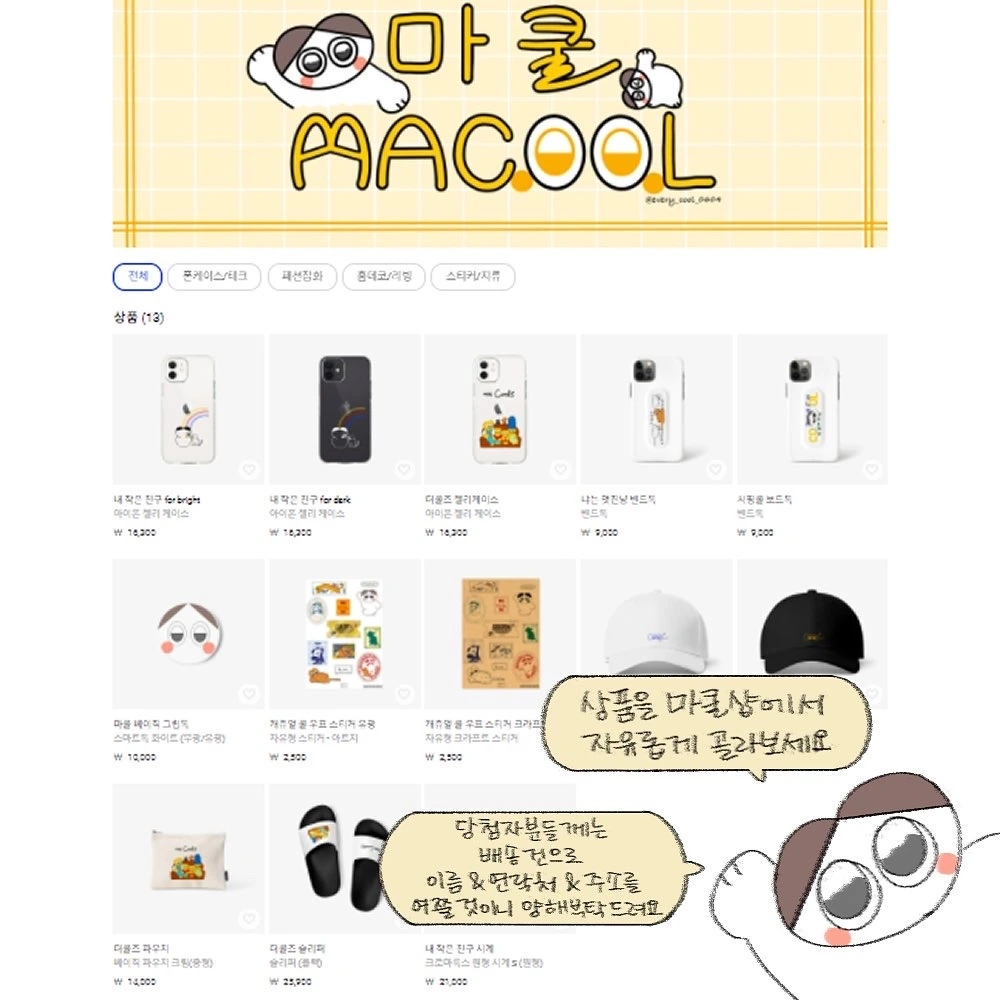 당첨자분들은 해당 굿즈샵(마쿨샵)에서