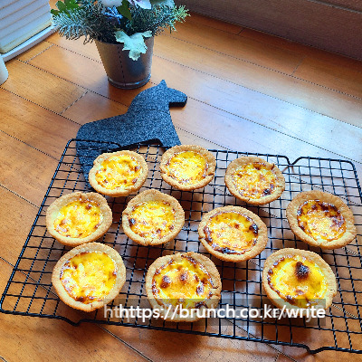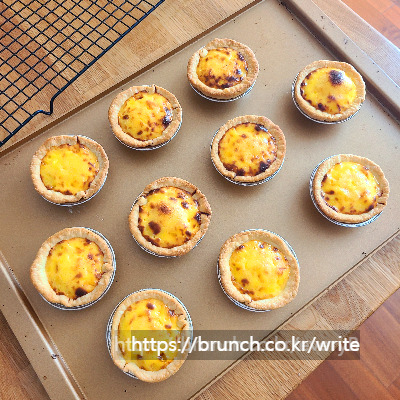 시간을 보고 꺼내기보다 내 오븐의 온도를 생각해서 시간을 정하고 에그타르트 윗면의 색을 보고 꺼낼 시간을 정한다.