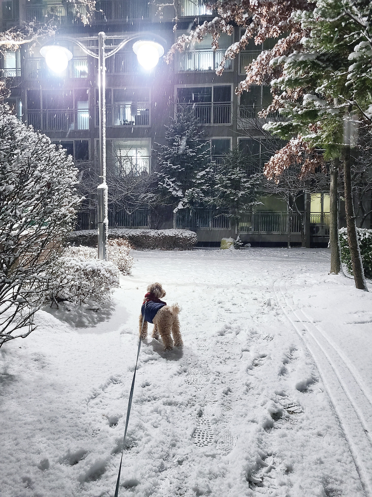 나의 반려견에게도 눈 구경을 시켜주고 싶어서 겨울이 오기도 전에 일찍이 장만한 패딩을 입혀 데리고 나갔다. 옷을 잔뜩 껴입은 탓인지 춥지는 않았지만 새하얀 아파트 단지의 땅이 맑은 햇살에 비쳐 눈이 부셨다. 아이들이 곳곳에 눈썰매를 들고 나왔다. 언덕진 곳마다 설매 타려는 아이들이 서너 명씩 비명을 지르고 있었다. 나의 강아지도 신이 났는지 눈밭을 이리저리 뛰어다닌다. 곳곳에 뿌려진 염화칼슘을 밟을까 봐 눈이 두껍게 쌓인 곳만 다녔다. 줄을 제일 길에 늘여주고 잠시 길가에 서있었다. 멀리서 다섯, 여섯 살쯤 되는 남매가 나의 강아지를 보고 반갑게 뛰어왔다.