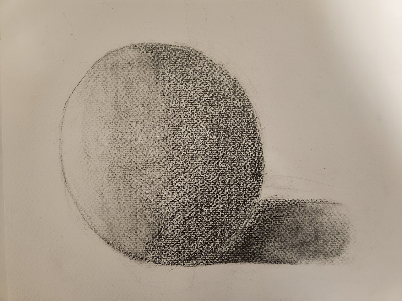 알고보니 구는 비스듬하게 빛을 받은 형태로, 구의 그림자는 왼쪽에서 바로 빛을 받은 형태로 스케치를 그렸던 것이다.