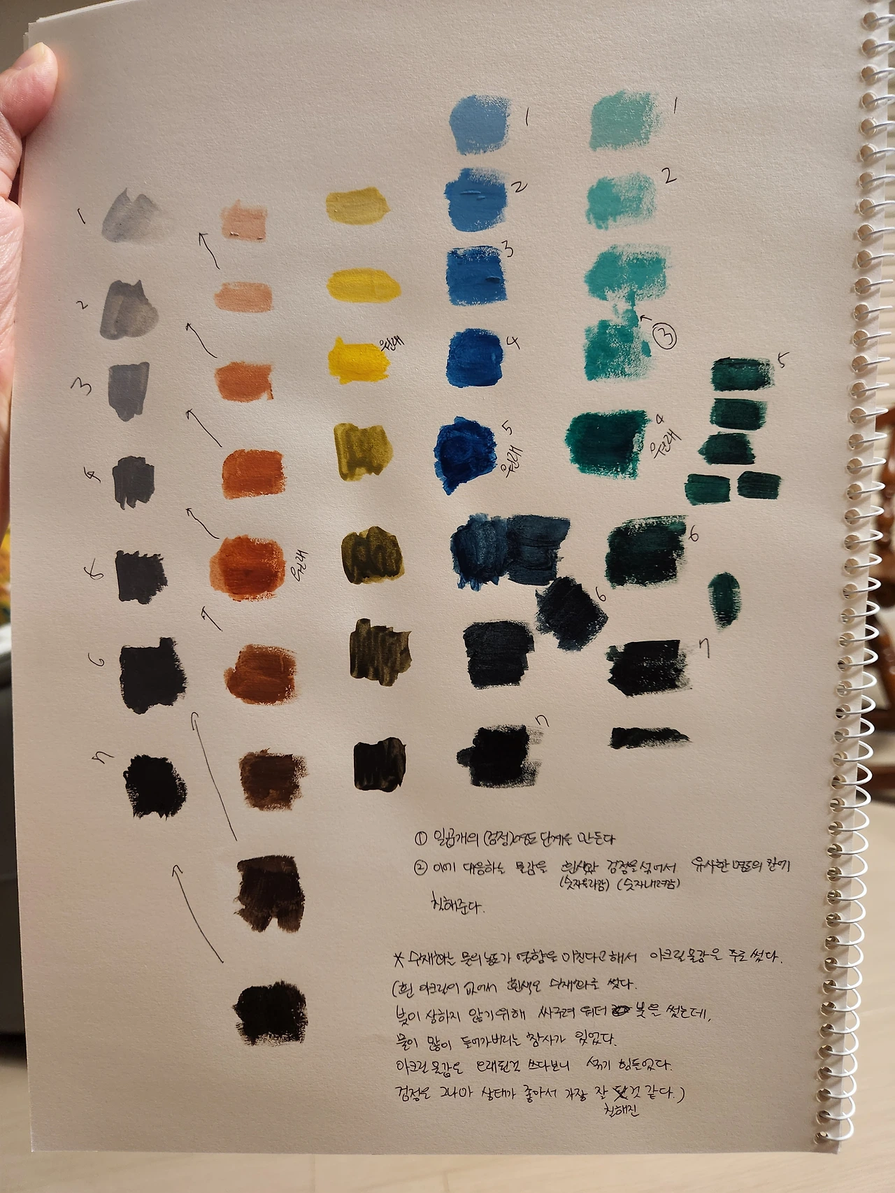 말이 어렵지, 해보면 쉽다. 또 생각하지 못했던 색이 나오기도 하고, 다른 색과 관계가 조금씩 보여서 재미를 느끼게 된다.