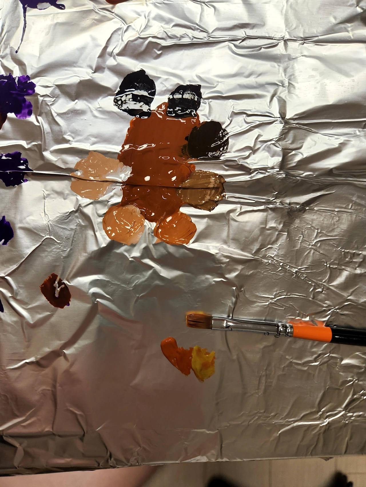 주황과 파랑이 보색 관계이고, 또 노랑과 보라가 보색관계라고 한다. 1:1로 물감을 섞게 되면 회색을 만들게 되는데, 세 회색 모두 빛이 오묘하게 다른 것을 볼 수 있다. 회색의 세계에도 여러 종류가 있다니, 신기하다.