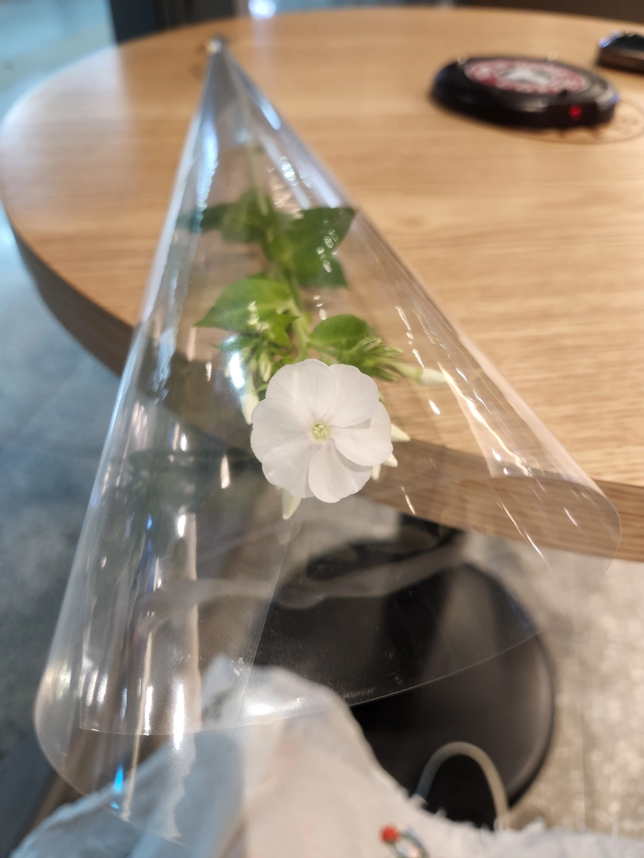 투명 플라스틱에 포장을 해주셨는데, 그 모습이 꽤나 마음에 들었다. 투명 유리컵에 담긴 꽃 그림을 그리는 것이 원칙이었지만 이 모습도 꽤나 예뻐보였기 때문이다. 새로운 사물의 특징을 관찰하고 있으니 예술적인 사람이 된 느낌이었다. 나중에 까먹기 전에 그 모습을 사진으로 남겨두었다. (후에 내 선견지명에 감탄을 하고 말았다.)