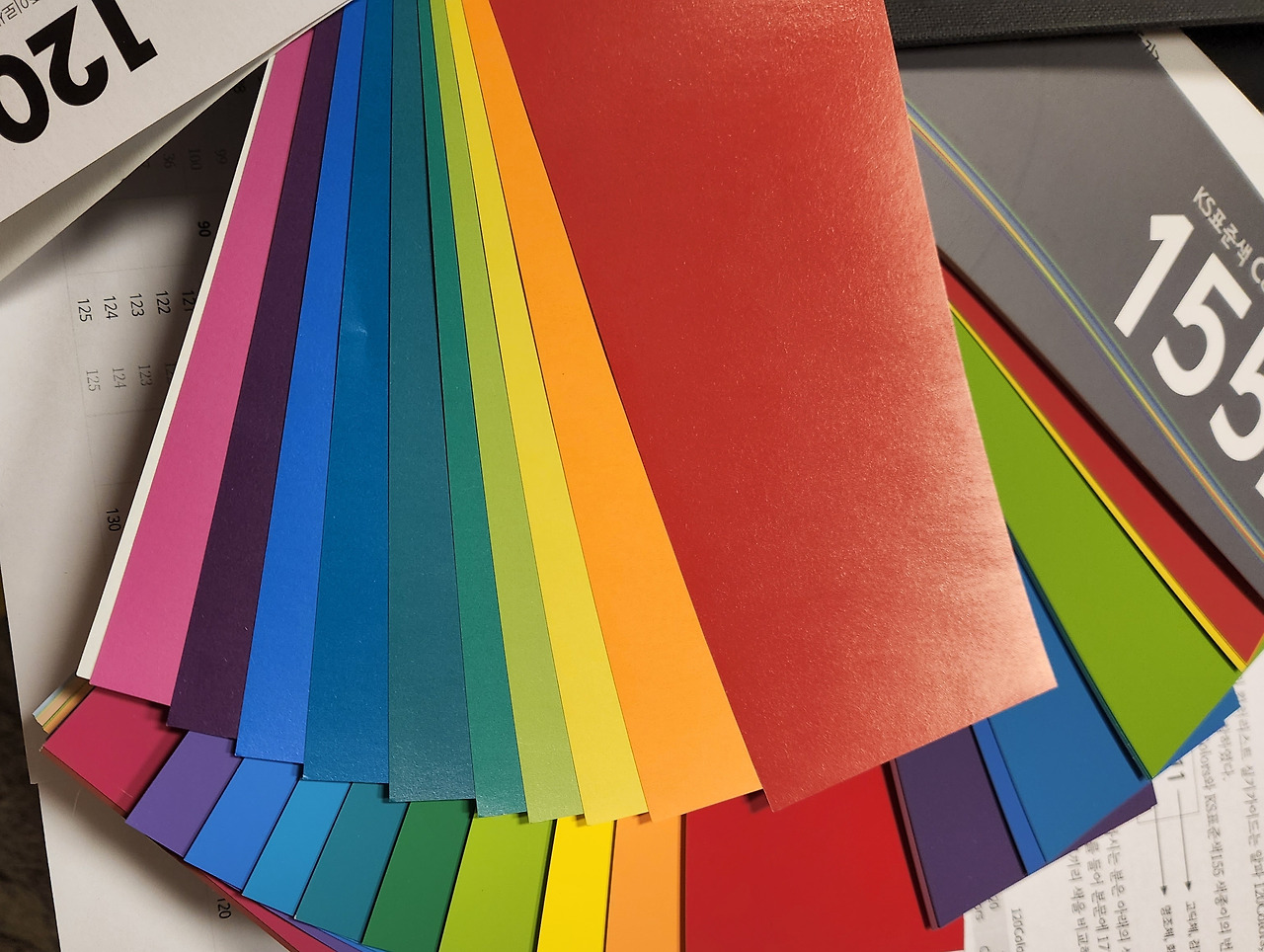 (실제로 컬러칩을 사도 브랜드별로 색이 꽤 차이나는게 있었다. 시험 때에는 어차피 내가 사용한 색종이에 상응하는 색에 대한 답을 쓰면 돼서 상관이 없나보다.)