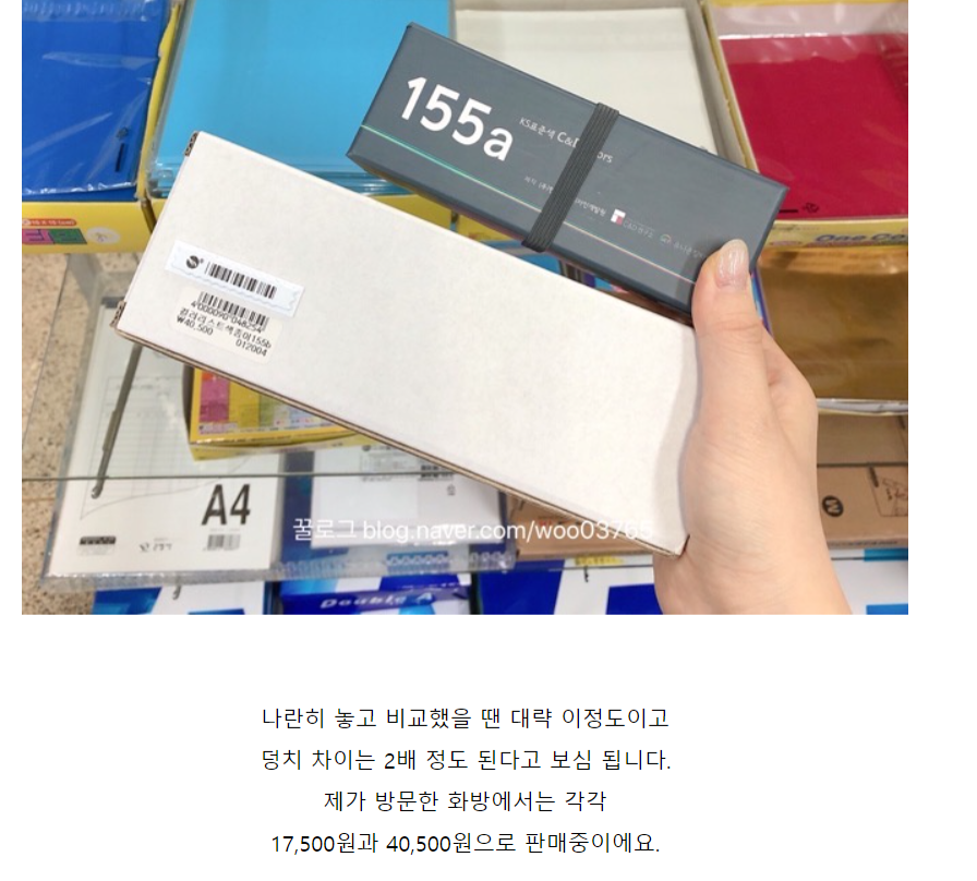 KS155A는 시험장에서 쓰이는 것보다 크기가 작아서 최소 B이상 사이즈를 써야한다. 위는 12년도 가격표 (37,000원)