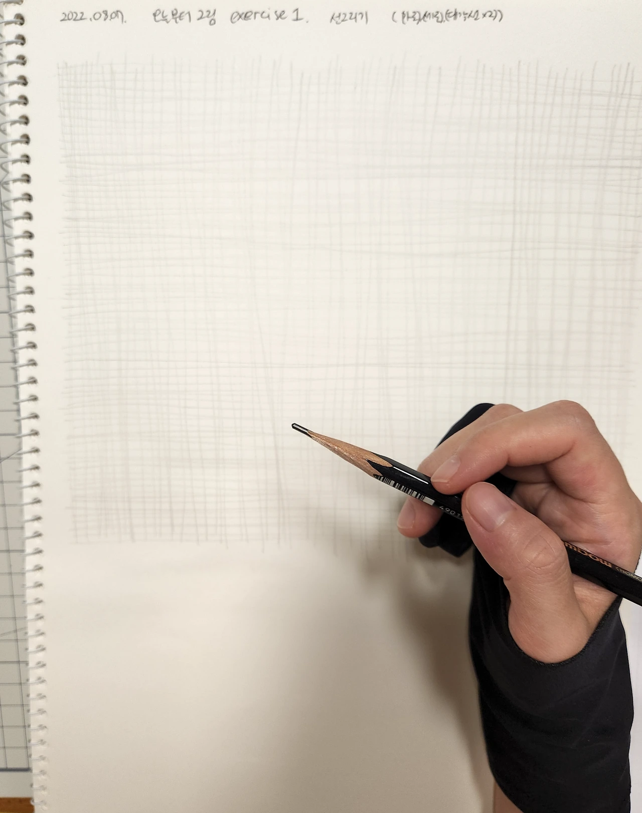 한 선 모두 다 강하게, 어느 것은 약하게 하며 전체적인 모습에서는 그라데이션이 보이게 해본다거나,