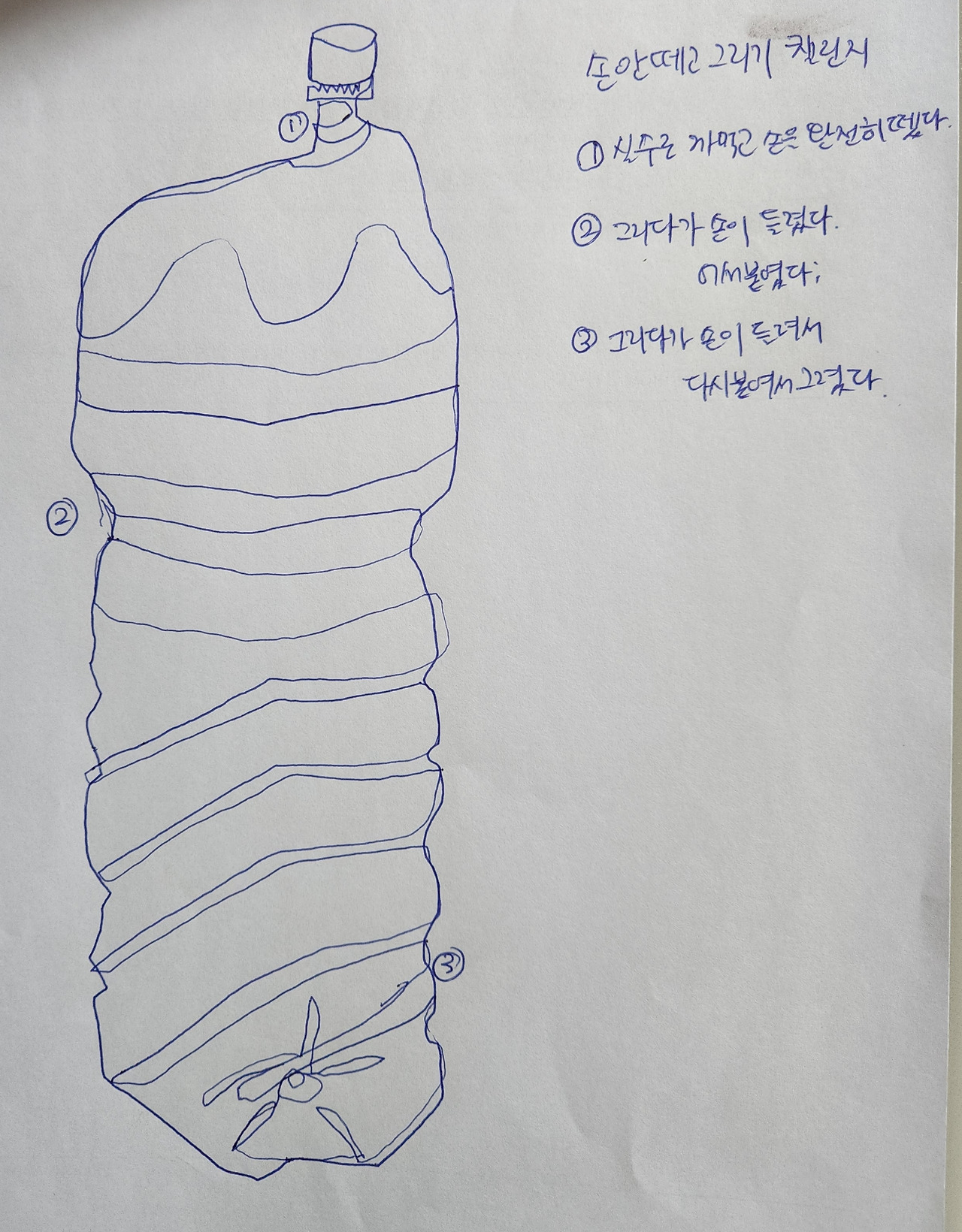 펜이기에 지울 수도 없다. 삐뚤삐뚤하게 그리는 것이 목표다.