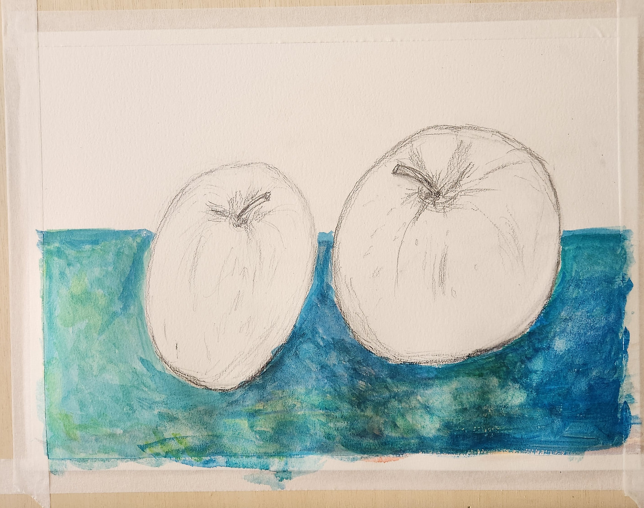 육안으로 봤을 때에야 그 공간의 왜곡이 느껴졌다. 실제 사과가 그렇게 공간이 휘어진듯한 느낌을 주다니, 너무 웃겼다. 엄마의 그림은 정확했던 것이다.