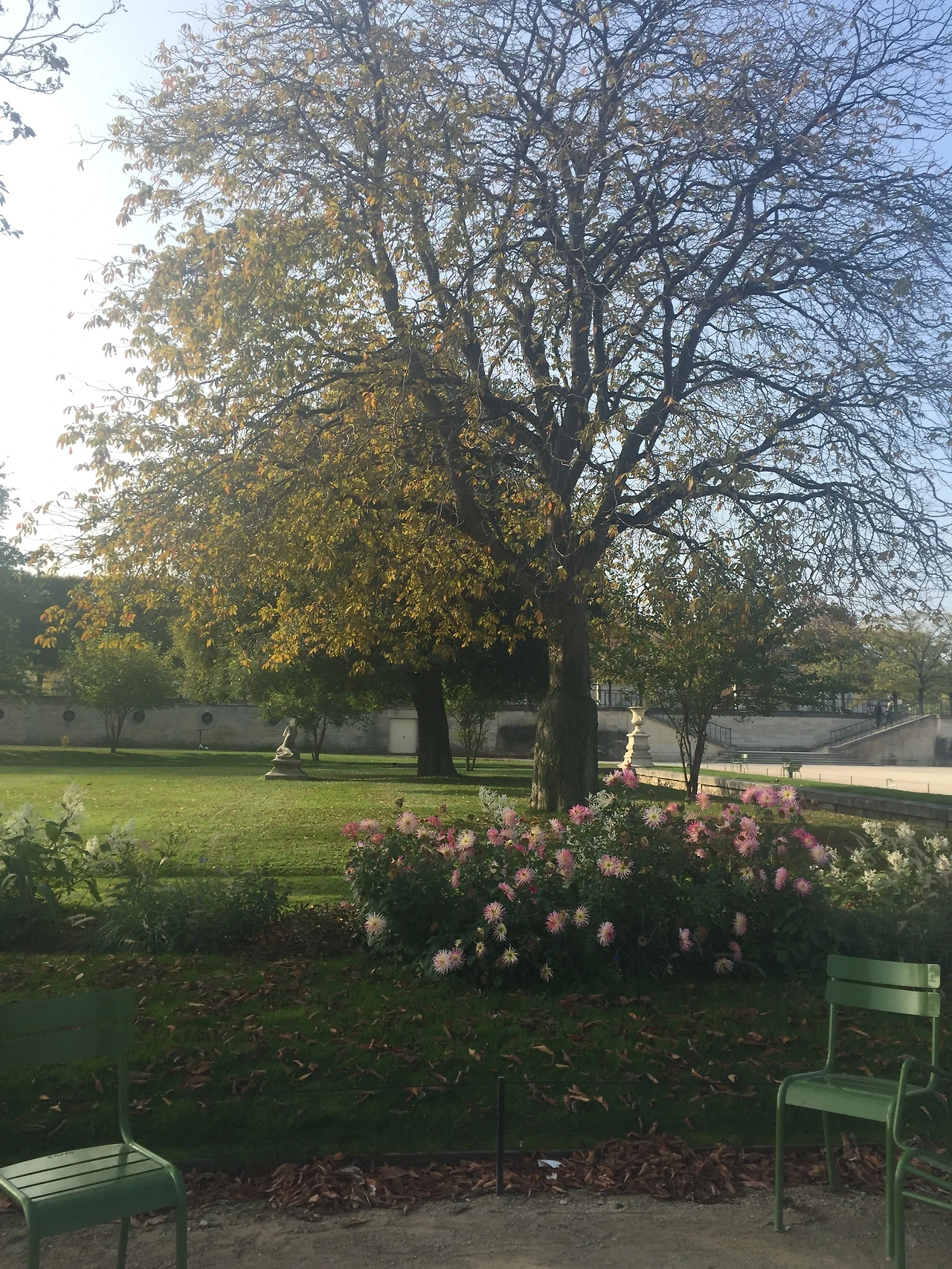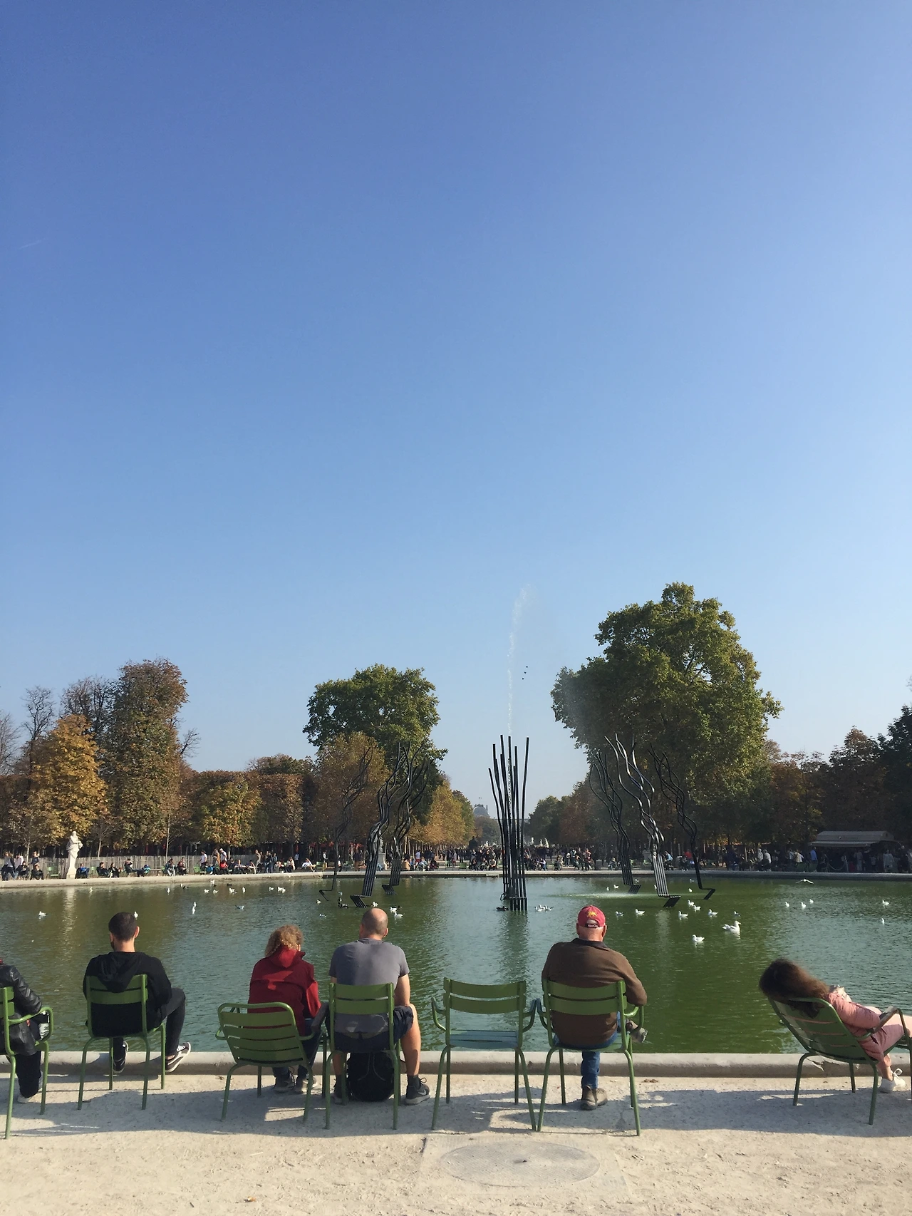 다리를 건너자마자 분홍색을 담은 푸른 공원이 보인다. 16세기 중반 완성된 계획 공원인 튈르리 공원(Tuileries Garden)은 오르세 미술관에서 루브르 박물관으로 가는 길에 만나게 되는 사랑스러운 공원이다. 넓은 잔디밭과 꽃들이 만발하고 있는, 튀를리 가든(garden)이라는 애칭이 걸맞은 아기자기한 정원이다.
