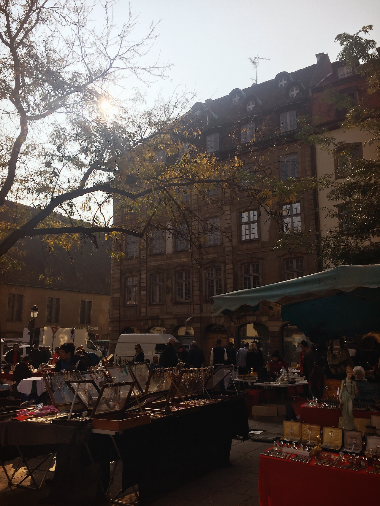 그 건축물을 향하여 방향을 잡은 뒤 거리로 나서본다. 가는 길에 스트라스부르 중앙에 위치한 클레베르 광장(Kléber Square) 옆에서는 벼룩시장이 한창이다. 유럽 여행을 하다 보면 골동품 시장(Antique Market)을 자주 마주친다.