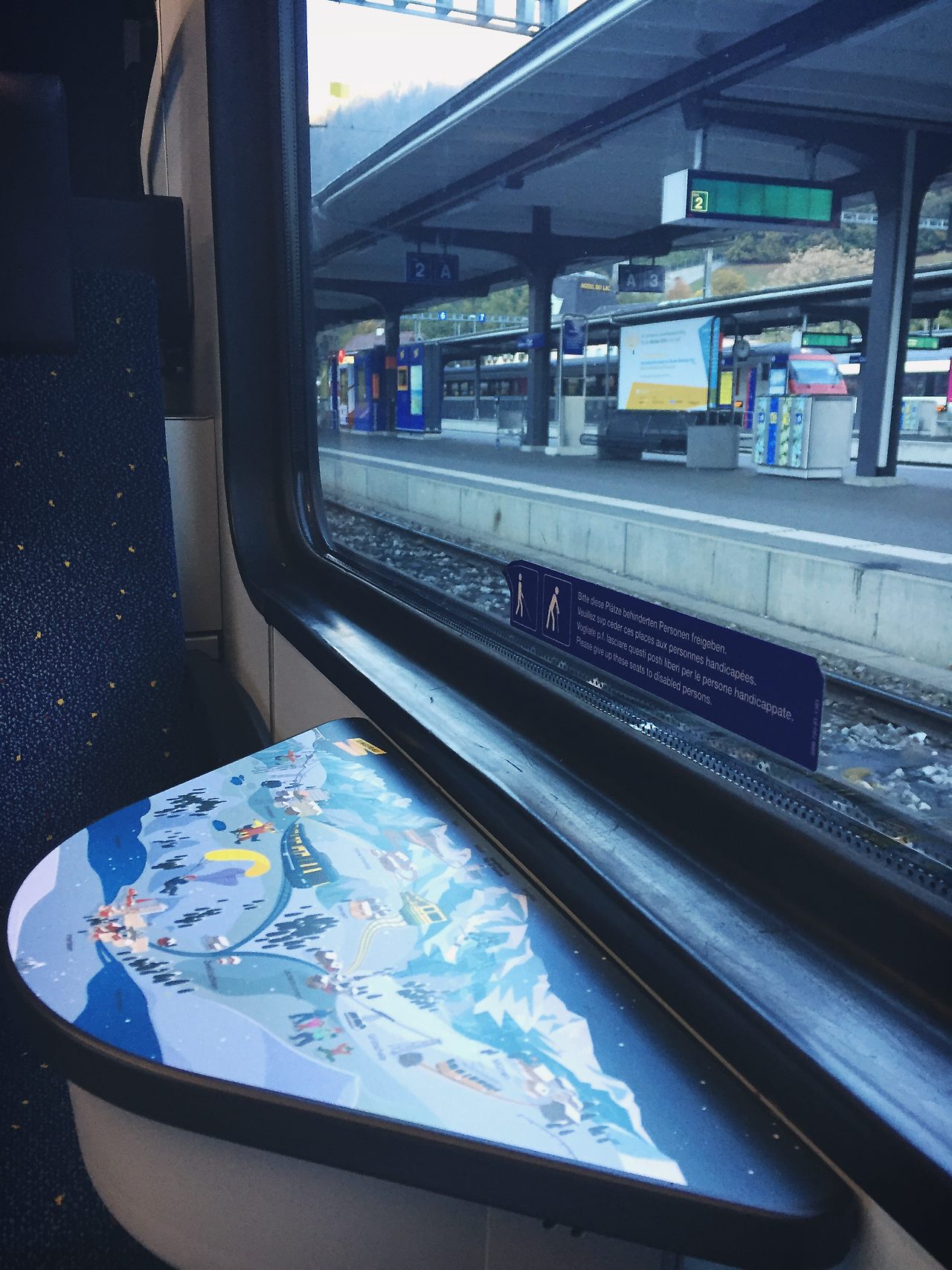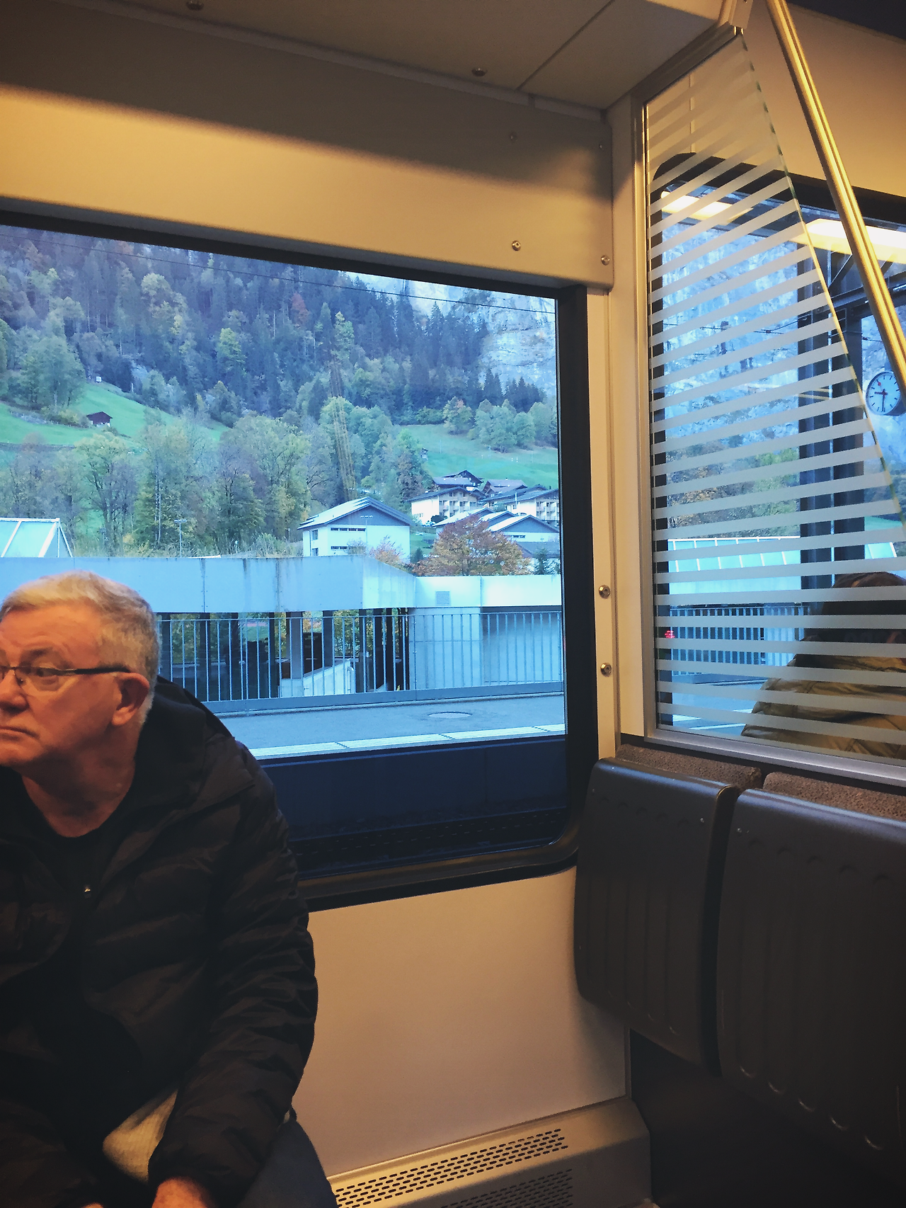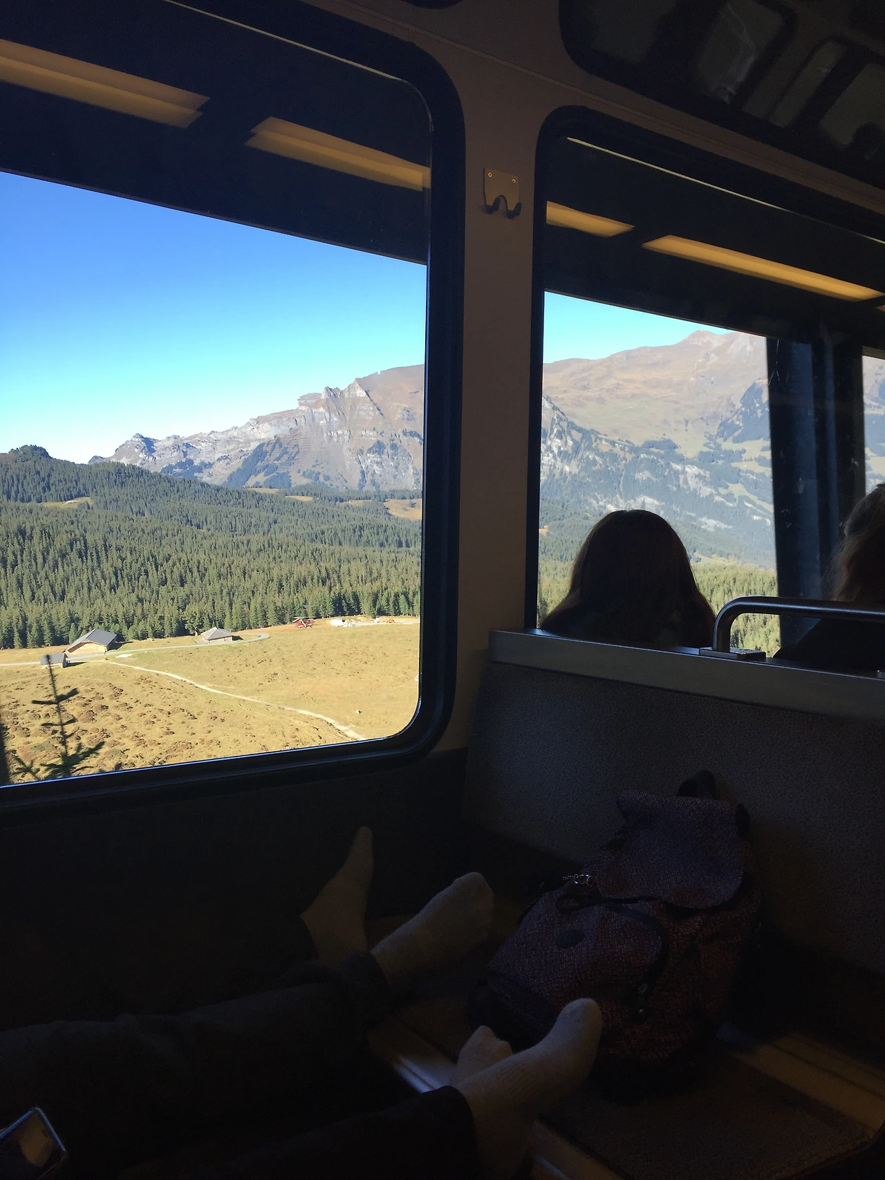 그린델발트에서 인터라켄으로 향하는 기차 안, 앞 좌석에는 친구로 보이는 서양 여자 두 명이 앉았다.