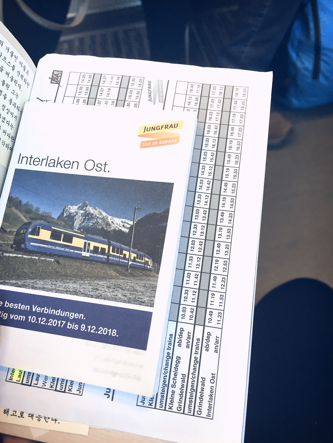 융프라우행 산악기차 기차표와 시간표(사진 옥별아)
