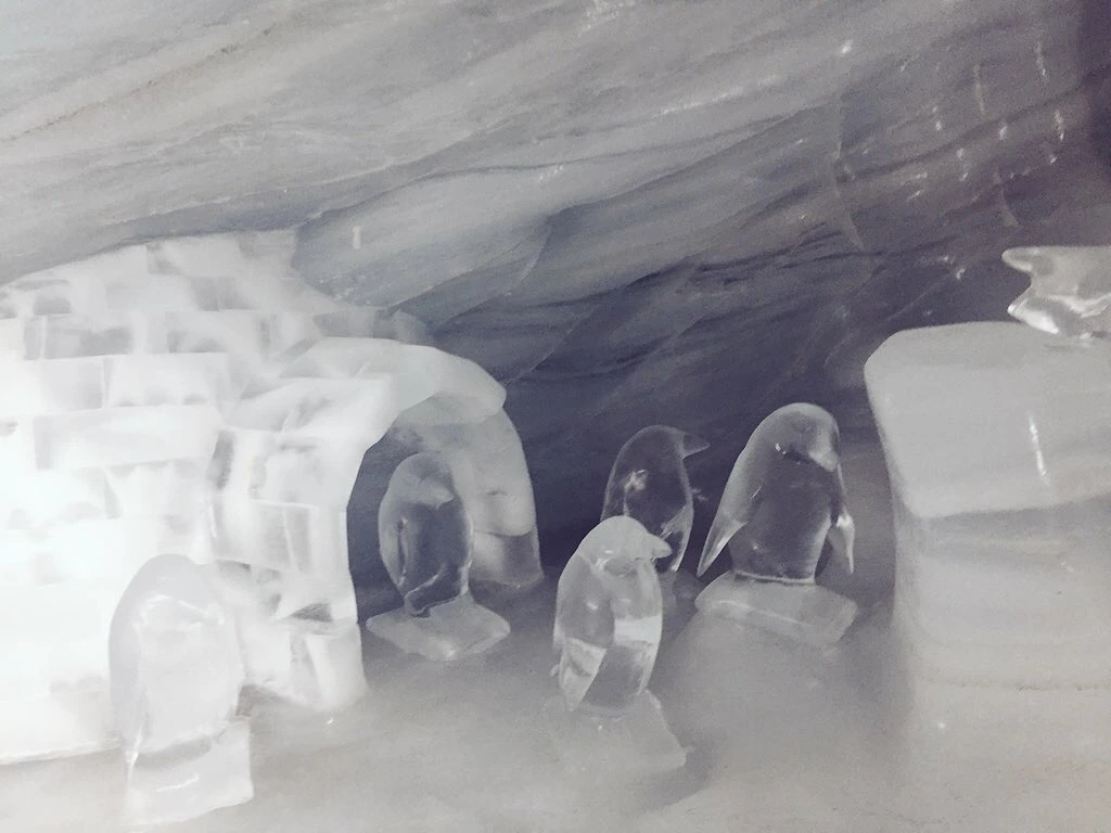 야외 테라스를 나와 얼음궁전이 있는 곳으로 향한다. 바닥부터 천장, 곳곳에 크고 작은 조각품들 모두 지하 30m의 빙산을 조각해서 만들었다. 얼음궁전의 천장은 아치형으로 길게 뻗은 궁전의 복도로 이어져 있다. 궁전 안에 이글루와 펭귄 가족이 유난히 사랑스럽게 느껴진다.