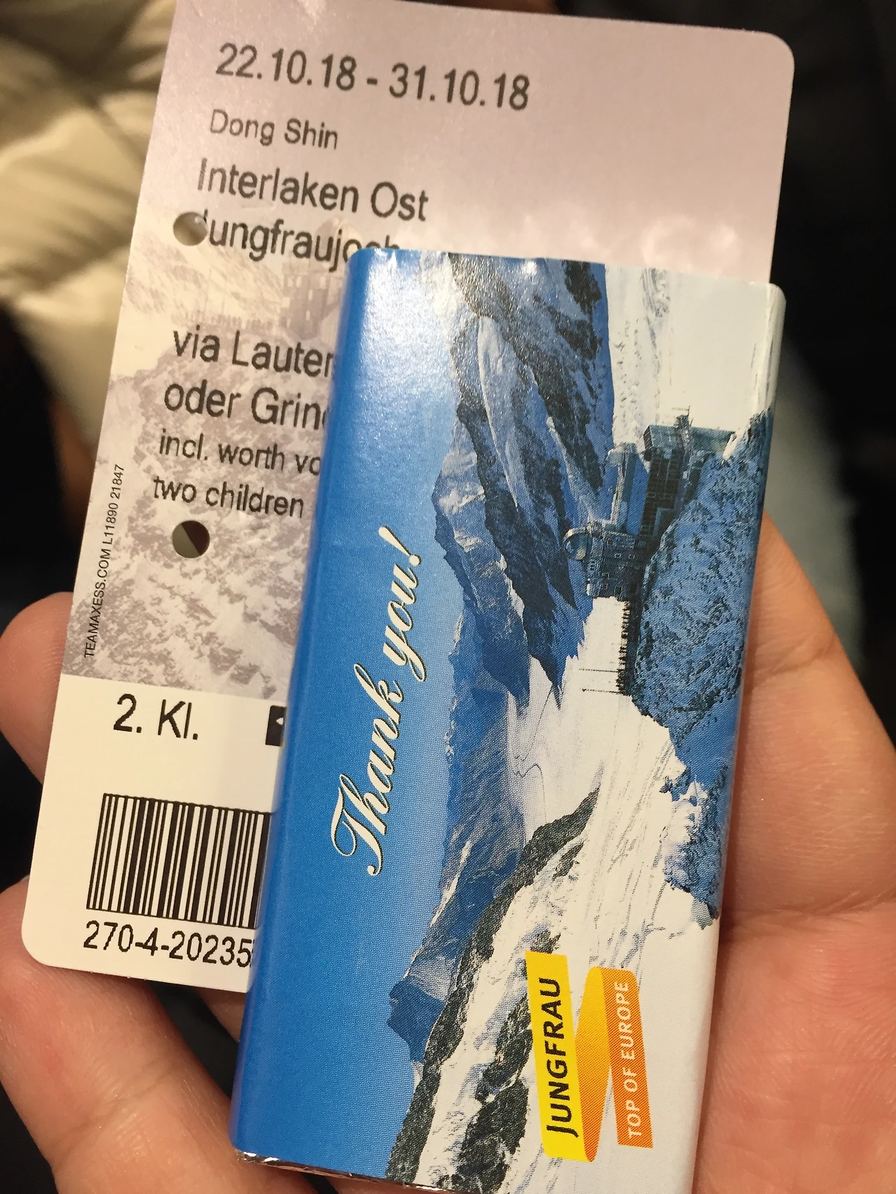 융프라우행 기차에서 받른 스위스 초콜릿(사진 옥별아)