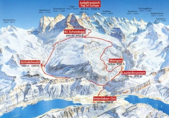 인터라켄 동역에서 융프라우로 가는 두 가지 루트