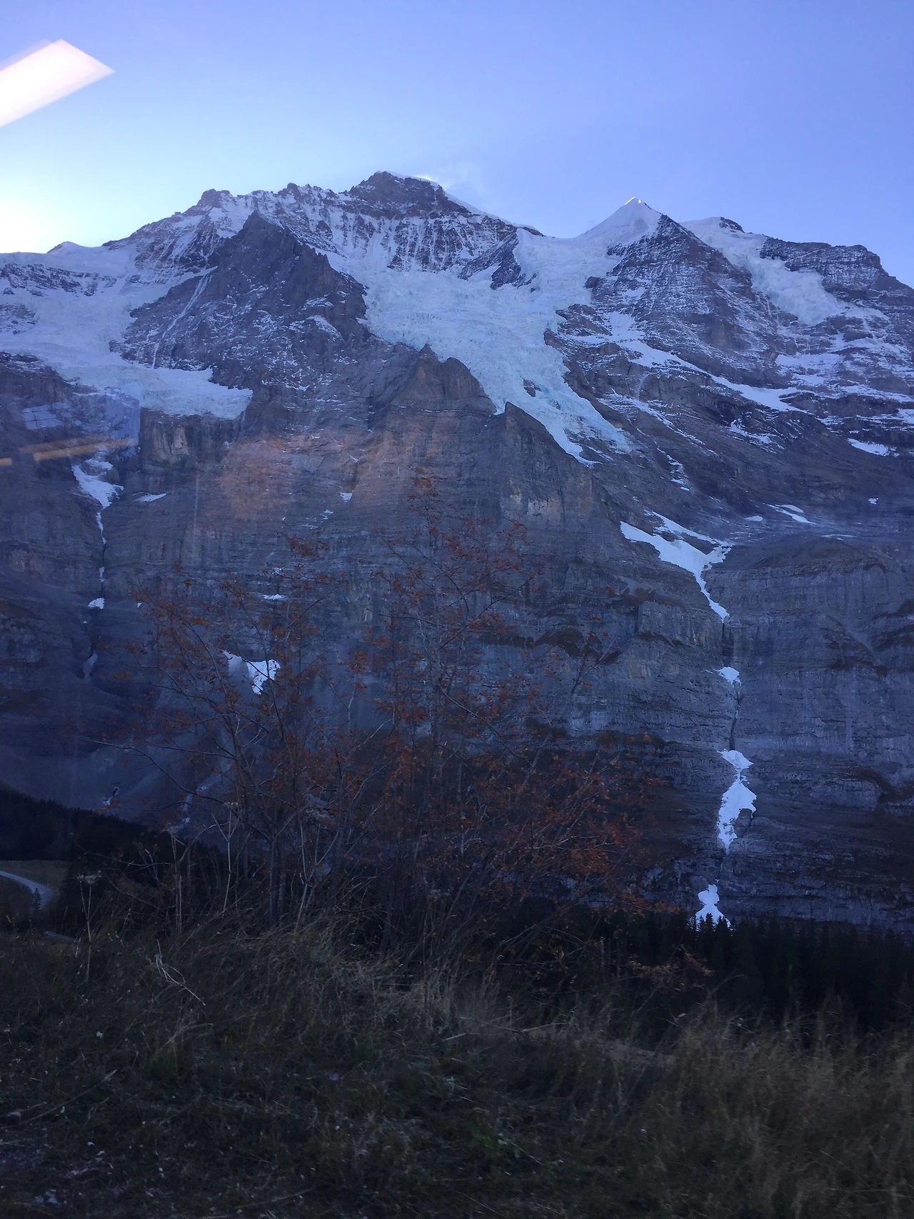 잠시 멈춰 선 알프스 중턱, 이 곳에선 알프스 산맥을 따라 높이 솟아오른 융프라우가 저 멀리 보인다. 알프스 최초의 유네스코 세계 자연유산이라는 융프라우의 모습이 가까워진다.