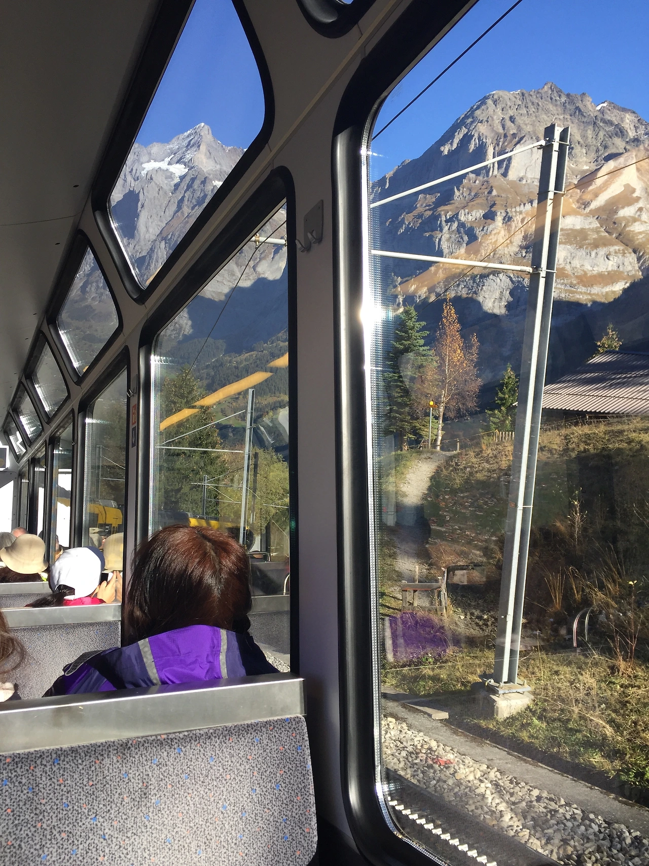 라우터부른넨에서 산악기차로 갈아타는 사람들(사진 옥별아) 융프라우로 향하는 산악기차 안에서 바라보는 알프스(사진 옥별아)