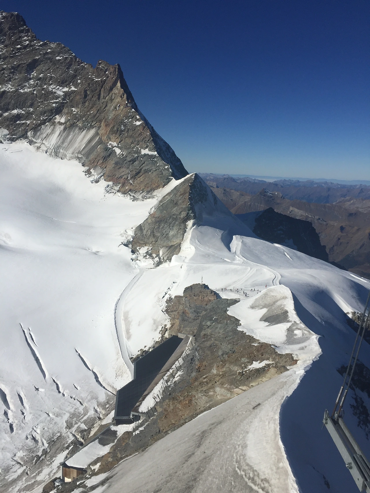 테라스 전망대는 융프라우로부터 자연스럽게 이어지는 알프스 산맥 전체를 바라볼 수 있는 장소였다. 코끝이 시릴 만큼 추운 날씨, 차가운 바람처럼 날카로울 것 만 같던 새하얀 알프스는 아늑하고 따사롭다.