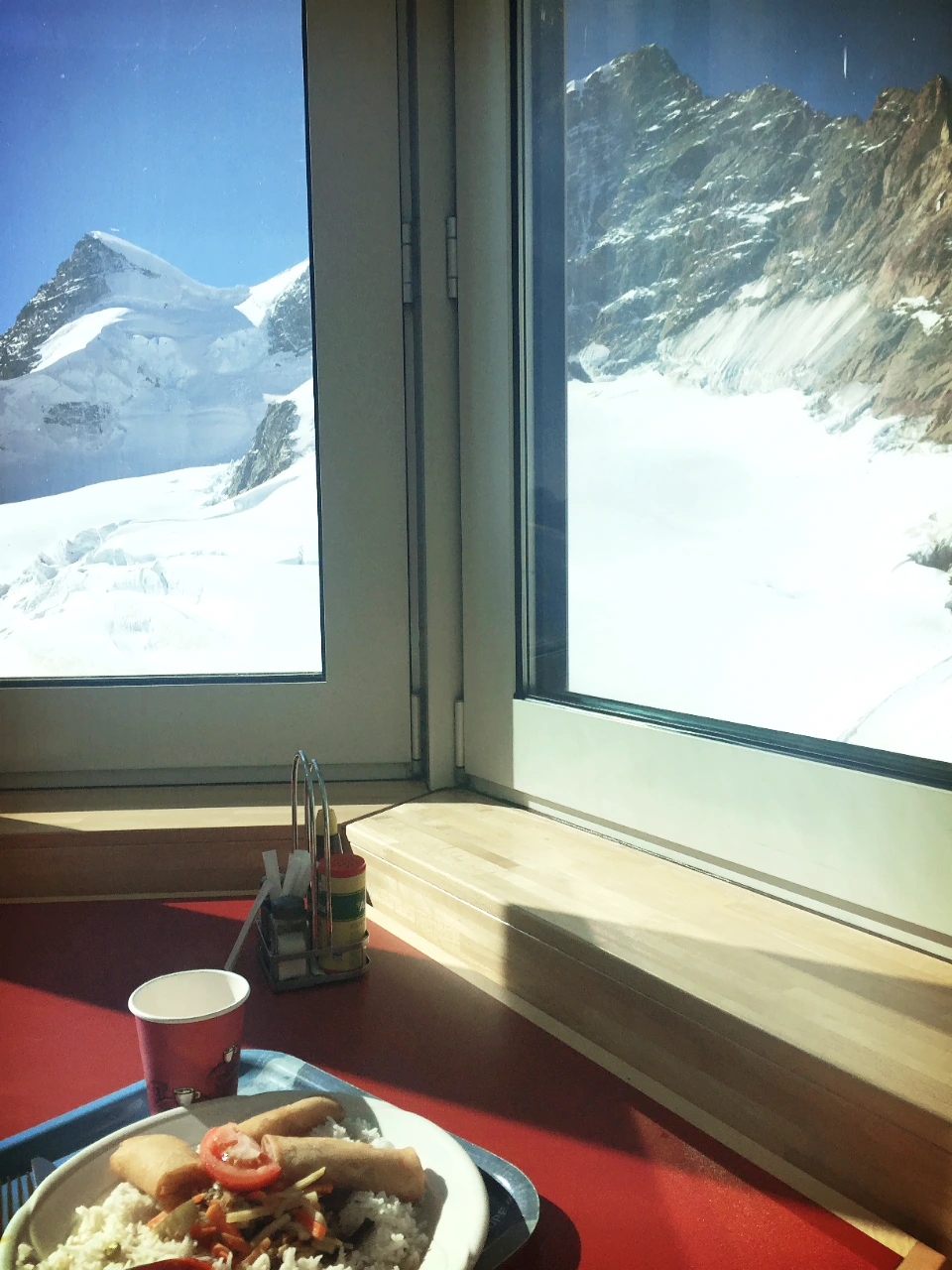 융프라우 식당에서 알프스 산을 바라보며(사진 옥별아)