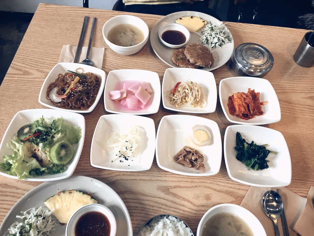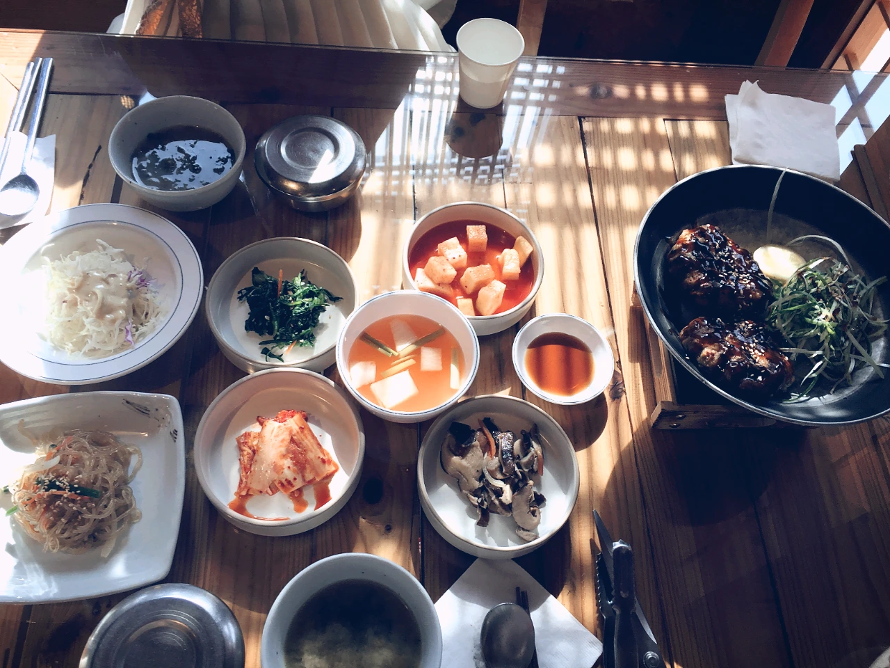점심은 지눔 맞은편에 바로 있는 교동 떡갈비에서 먹기로 한다. 가격은 1인분 12,000원, 푸짐한 전라도식 반찬과 함께 나온다. 전주에서 잘 차려진 밥상을 10,000~20,000원에 넉넉히 누릴 수 있다. 우리는 전주 한옥 마을에 있으면서 떡갈비를 하루에 한 번 은 먹었던 것 같다.