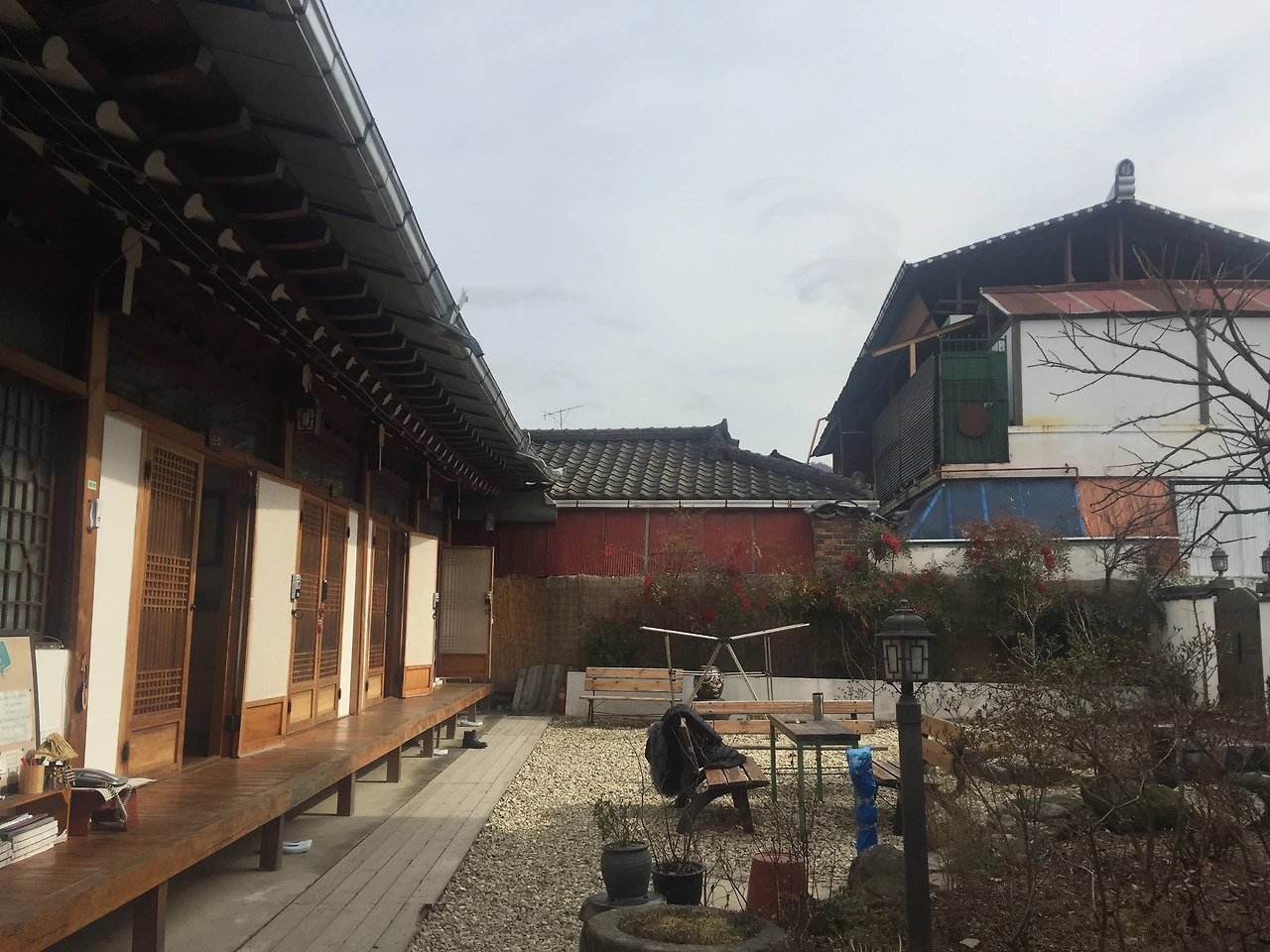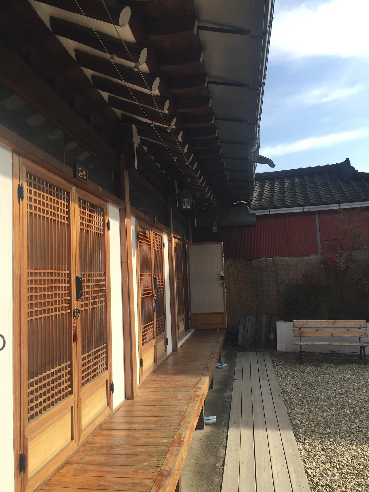 한옥마을의 중심지에서는 약간 벗어난 위치에 있는 숙소. 그러나 한옥마을의 크기는 그리 크지 않아, 중심부와 겨우 도보로 2~3분 정도이다. 조용하고 가정집 다운 분위기에서 시간을 보낼 수 있어 나와 언니에겐 안성맞춤의 곳이었다.