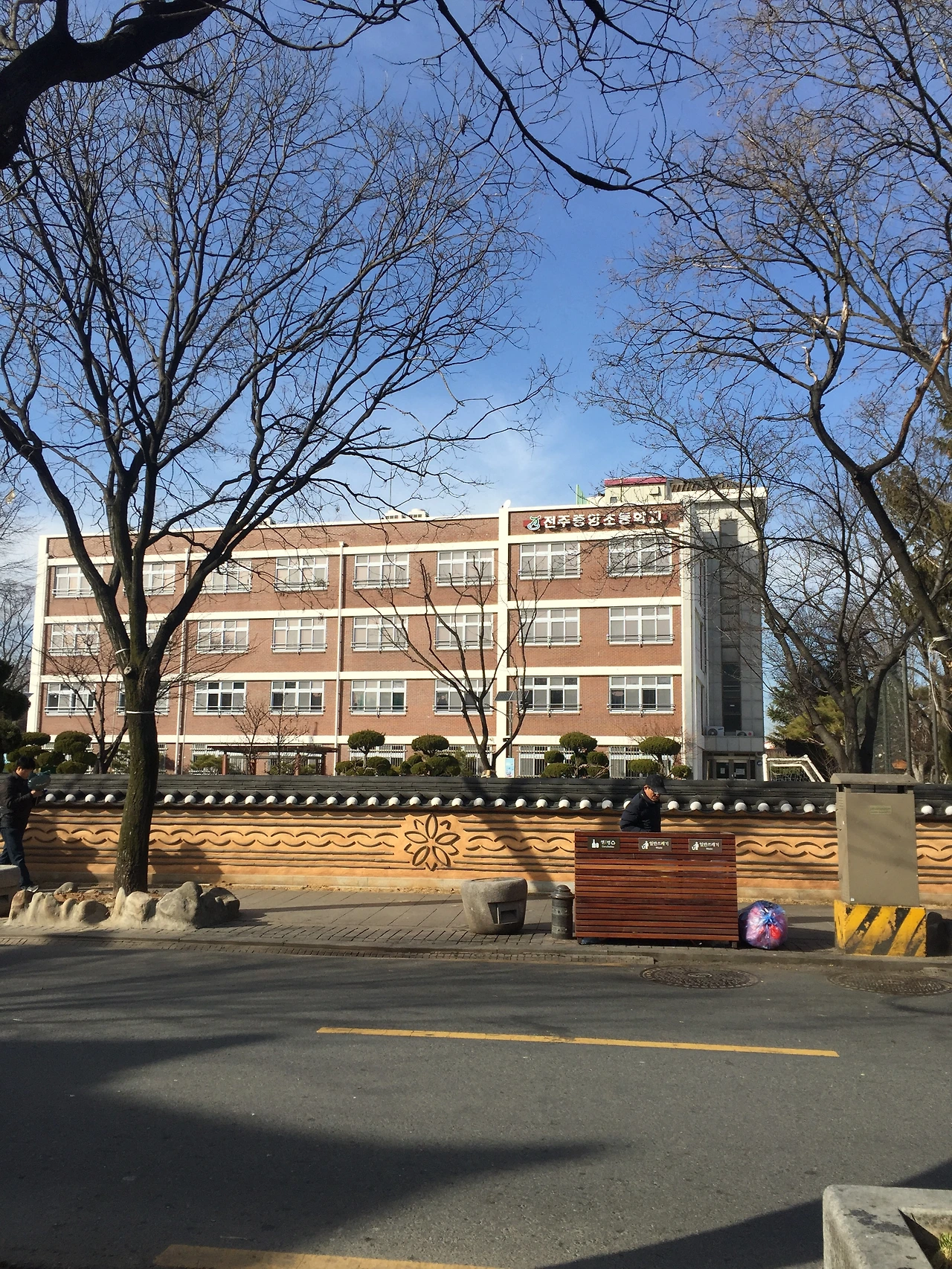 한옥 마을 중심에는 전주 초등학교가 있다. 한옥 마을 안에 자리 잡은 초등학교, 길거리 하나하나 발길 닿는 곳 모두가 보물 같은 이 곳 전주 한옥마을.