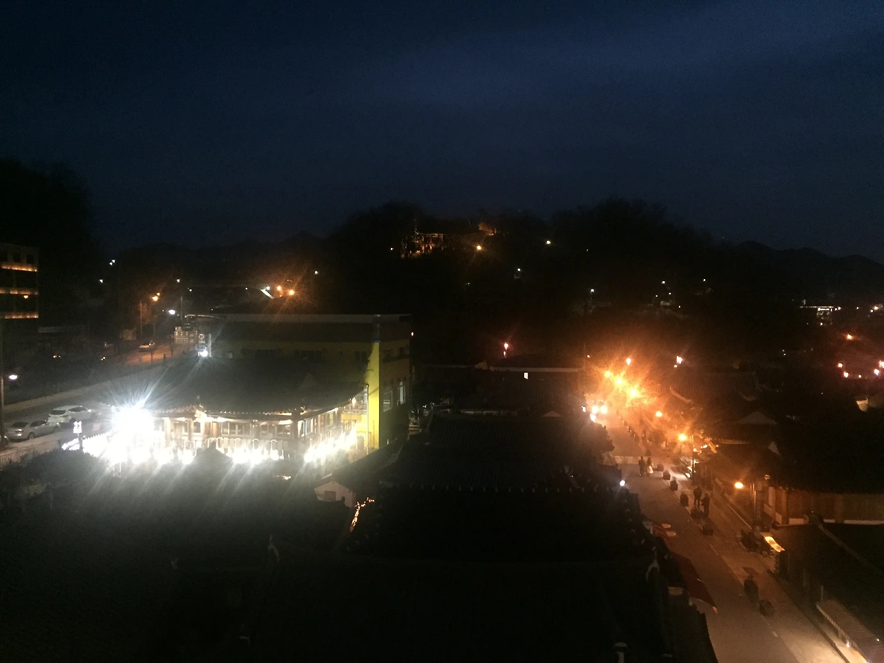 한옥마을의 야경은 짙은 밤에 고즈막히 빛나는 한옥 채들이 주는 매력으로 가득하다. 한옥마을에는 야경을 볼 수 있는 루프트 탑 카페가 있는데, 이 곳에서는 한옥마을의 야경을 풍부하게 즐길 수 있다.
