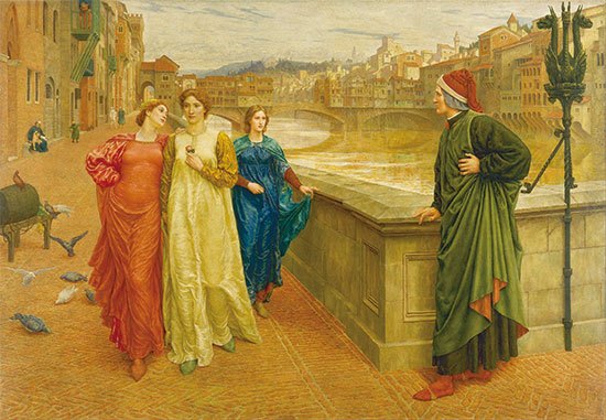 19세기 영국 화가 헨리 홀레 데이가 단테와 베아트리체의 베키오 다리에서의 운명적인 만남을 그림으로 옮겼다.