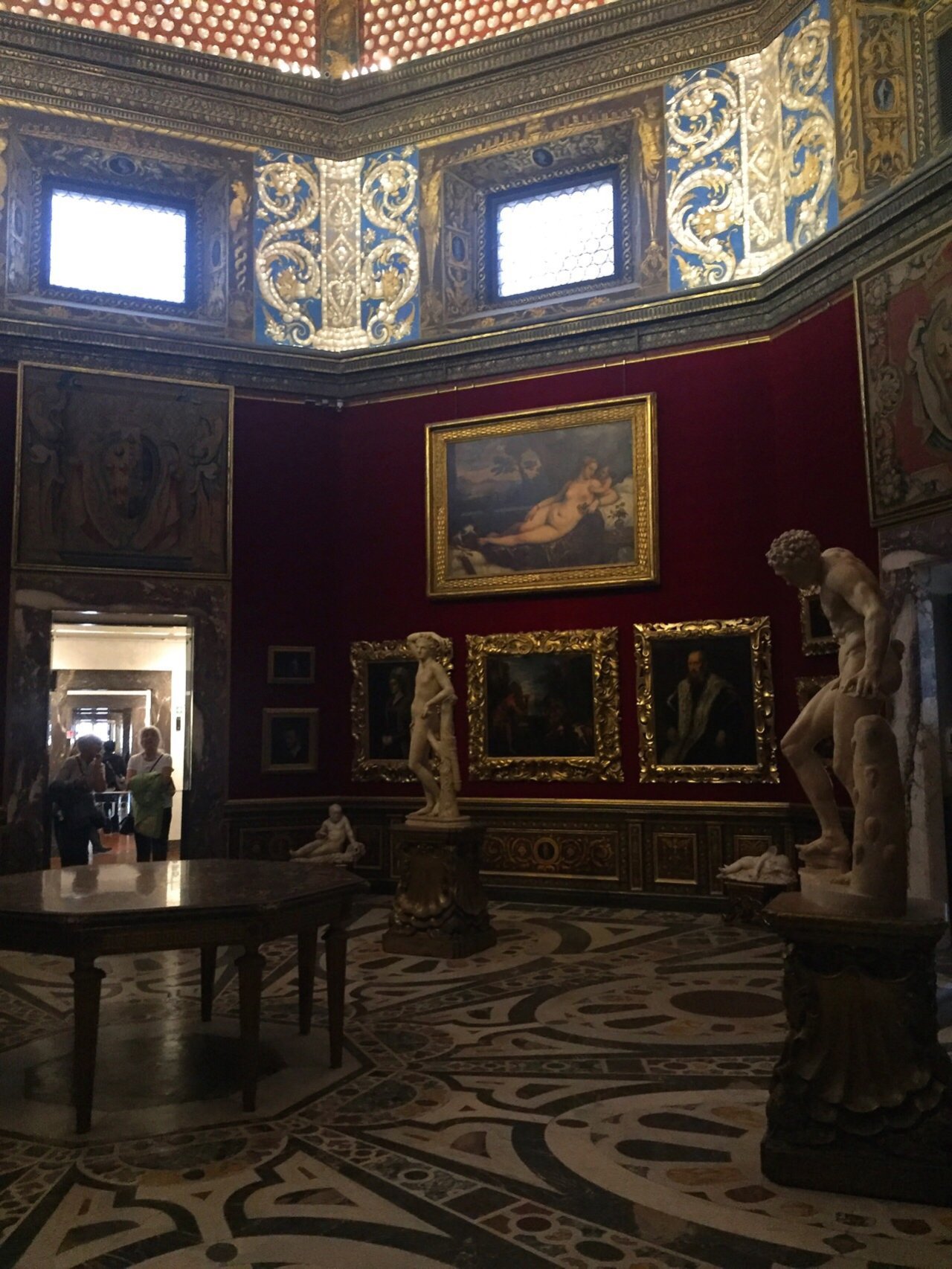 오랫동안 메디치 가에서 모은 미술품들은 1737년 피렌체 시에 기증되었고, 이후에도 수많은 작품들이 더해지면서 세계적인 미술관으로 자리하게 되었다. 현재 총 45개의 관에 2500점에 이르는 작품이 있다.