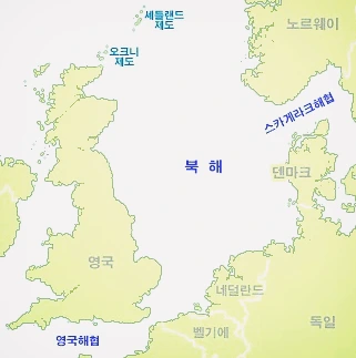 북해는 노르웨이와 영국 제도 사이에 있는 대서양 북동부의 수심이 얕은 부속해이다. 수심은 대부분 90m 이내이며, 해저는 북쪽으로 경사져 있으며 대체로 울퉁불퉁하다. 북쪽으로 셰틀랜드 제도, 서쪽으로 영국·오크니 제도, 동쪽으로 노르웨이·덴마크, 남쪽으로 프랑스·벨기에·네덜란드·독일 등과 경계를 이룬다.