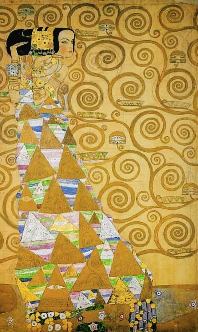 그림은 클림트 화풍의 가장 큰 특징인 금빛으로 가득 물든 모습이다. 그 가운데 약간 빗겨 나게 자리 잡고 있는 여인은 어찌 보면 아련하게, 또 다르게 보면 아무런 느낌 없는 얼굴로, 달리 보면 무언가를 강렬히 갈구하며 바라보고 있다. 그녀가 바라보고 있던 것은 그녀를 담고 있는 화가, 클림트가 아니었을까? 그녀가 남편을 두고 클림트와 사랑에 빠지게 만든 것은 무엇이었을까?