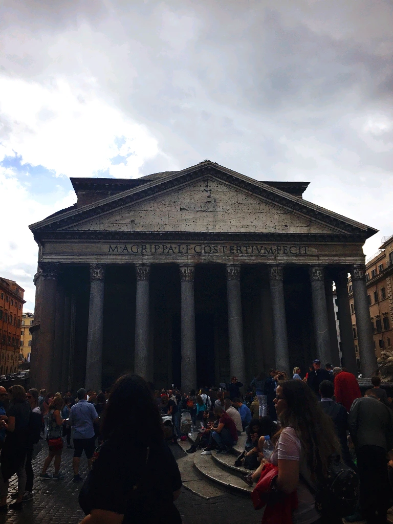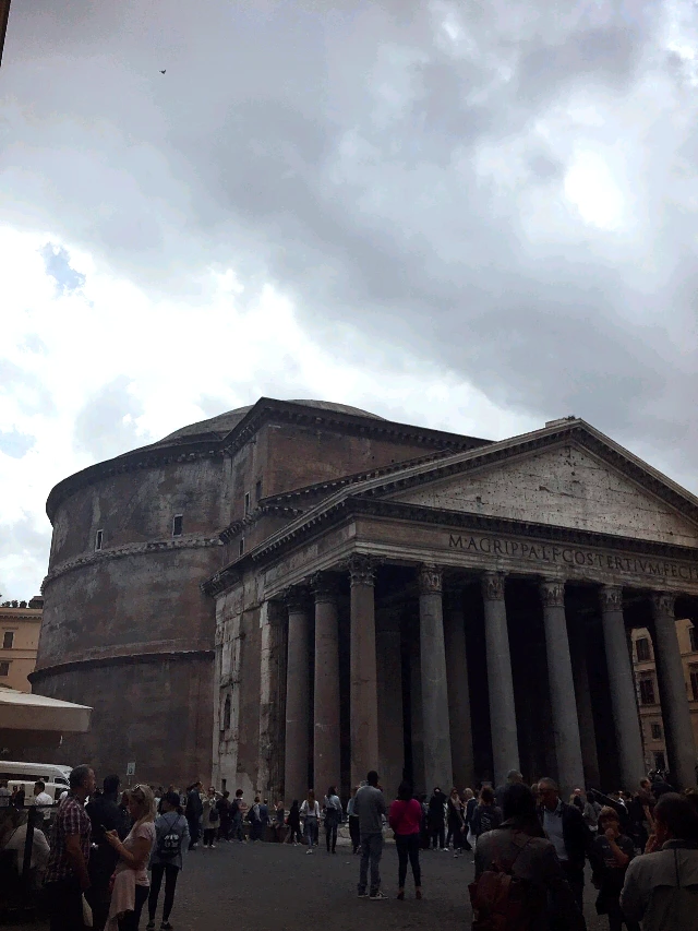 북적북적한 로마의 길을 따라 걷다 그리 크지도 않고 넓지도 않은 광장, 그 안에 짙은 회색빛의 석조 건물이 눈에 띈다. 판테온이다.