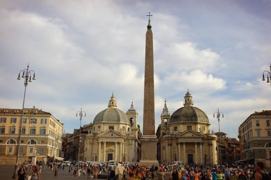 포폴로 광장은 1820년 이탈리아의 건축가 중의 한 명인 주세페 발라디에 의해 완성된 넓은 광장이다. 핀초 언덕과 테베레 강 사이에 있는 이 광장은 '민중의 광장'이라는 뜻으로 한때 이곳에서 많은 집회가 열리기도 했다. 이 광장의 위치는 도시 로마의 입구와도 같은 곳이어서 이탈리아의 북부지역, 혹은 외부에서 로마로 들어오는 사람들에게 로마라는 도시가 대단하다는 것을 보여주기 위해 만들어졌다고 한다.