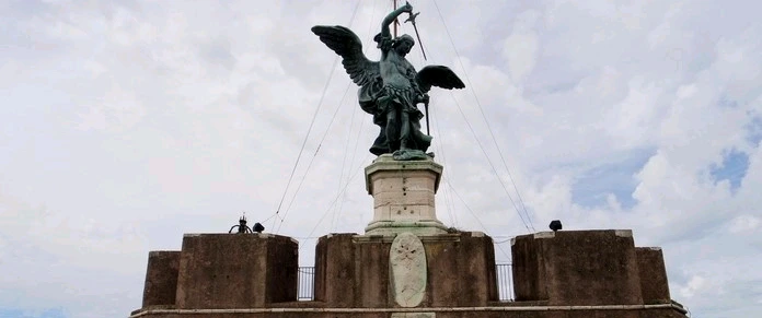 산타 젤로 성의 또 다른 이름은 ‘천사의 성’인데, 그 이름을 나타내듯 성의 가장 높은 부분에는 천사의 상-미카엘이 로마 시내를 내려다보고 있는 듯 지키고 있는 모습이다. 당시 590년 '페스트(Pestis)'가 만연했을 때, 교황 그레고리우스가 산탄젤로 성 위에 천사가 떠 있는 환영을 본 후 로마에 페스트가 점차 사그러들었다고 한다.