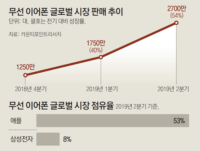 에어팟은 개인 음향기기 분야에서 '파괴적 혁신'을 일으켰고, 에어팟 이후 많은 기업들이 무선 이어폰으로 사업을 본격 재편하기 시작되었다. 그럼에도 에어팟은 애플의 브랜드 가치와, 전원 On/off가 필요 없는 혁신적인 UX 등으로 무선 이어폰 시장을 개척하고, 장악하고 있다.