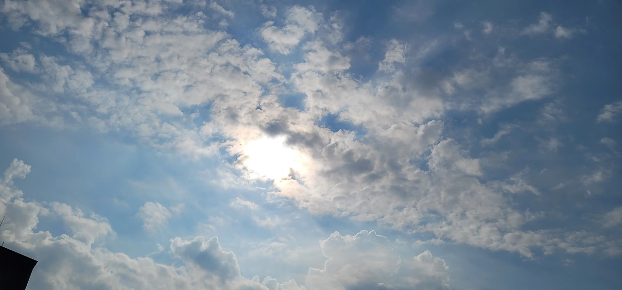 그러다 보니 오늘 아침 첫 하늘 사진은 해가 중천(까지는 아니지만 거의 꼭대기)에 가 있네. 오마이..