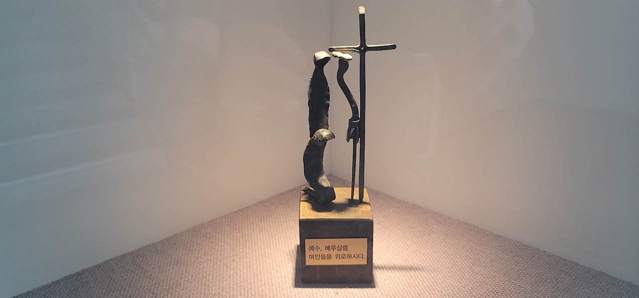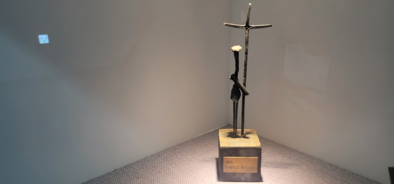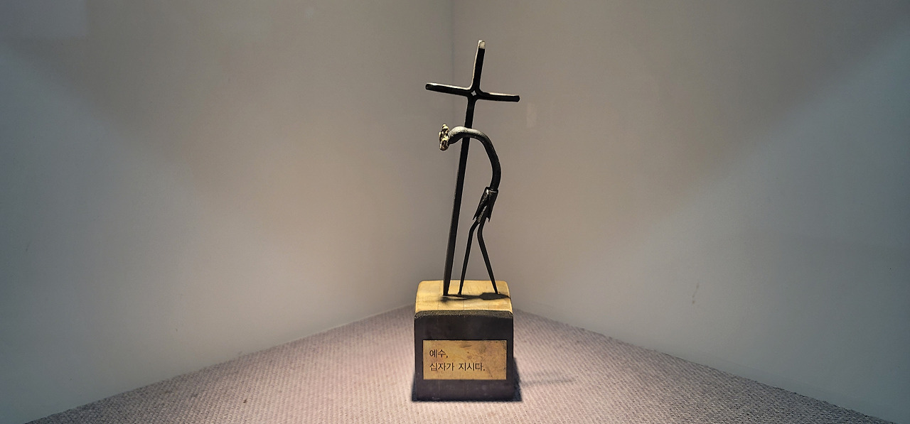 십자가의 길 고통의 길을 쇠못을 모티브로 형상화한 작품이 교회 곳곳에 설치되어 있었다.