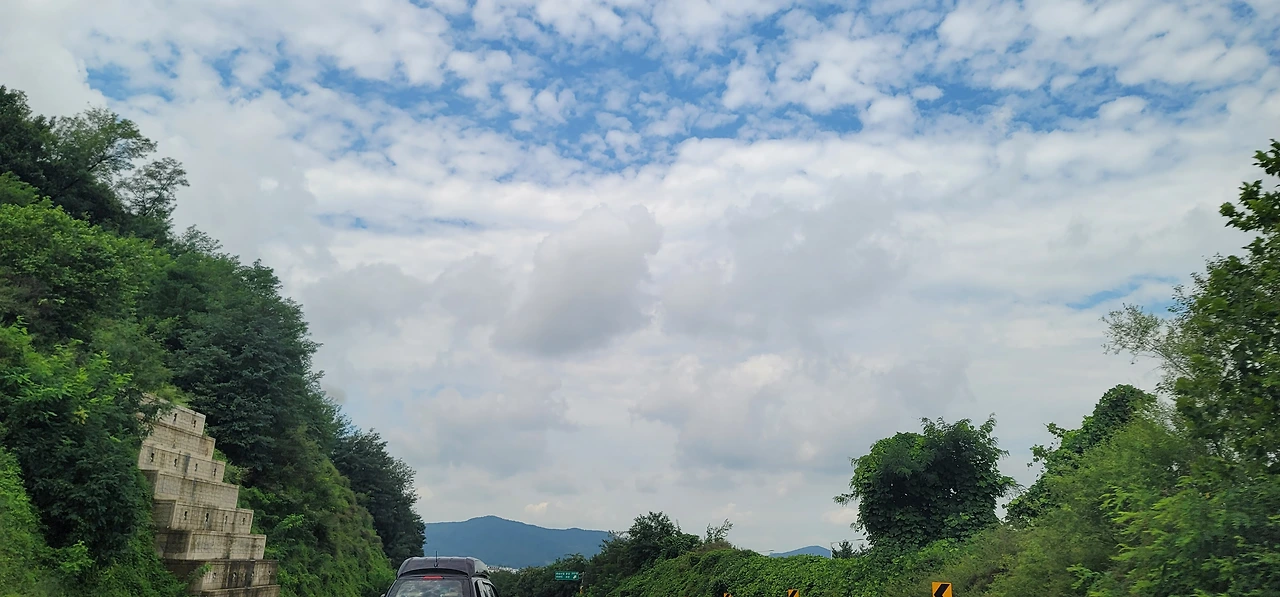 하늘구름이 천천히 일정한 속도로 흘러가고 있다.