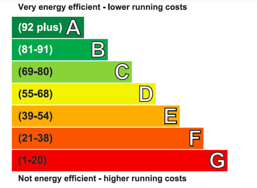 해당 주택이 얼마나 효율적으로 에너지를 사용하는지 나타내는 지표인데, 흔히 집 안의 전기나 난방 성능이 얼마나 좋은지를 알 수 있는 척도라 하면 되겠다. 최소 'E' 등급 이상이면 부동산에 매물로 내놓을 수 있다고 하지만, 실질적으로 거주하기 이상적인 등급은 '최소' C등급 이상이라고 한다.(B이상이면 베스트, 그야말로 한국처럼 겨울에도 실내에서 반팔도 입을 수 있다고 함. 최근에 런던 외곽에 지어지는 신형 아파트가 대부분 이 B등급 이상이라고 함)
