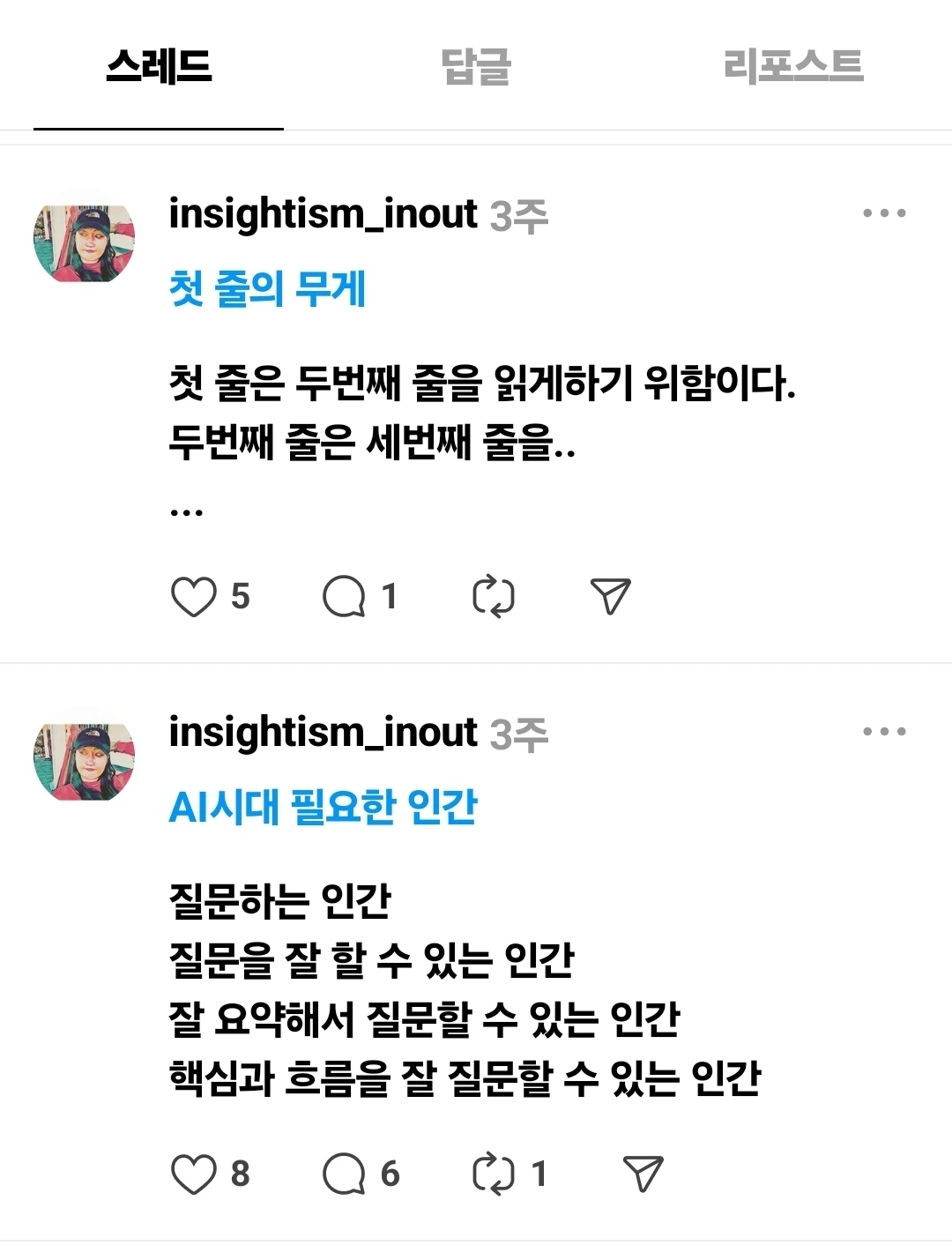 내가 스레드를 하는 이유는 양질의 정보 공유와 노하우를 얻을 수 있기 때문이다.
