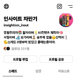 스레드 팔로워도 하루에 몇 십 명 증가일 때도 있고 1명일 때 있다. 웃프지만 처음을 생각하면 감사하고 그냥 이 과정을 즐기고 기록하고 싶다.