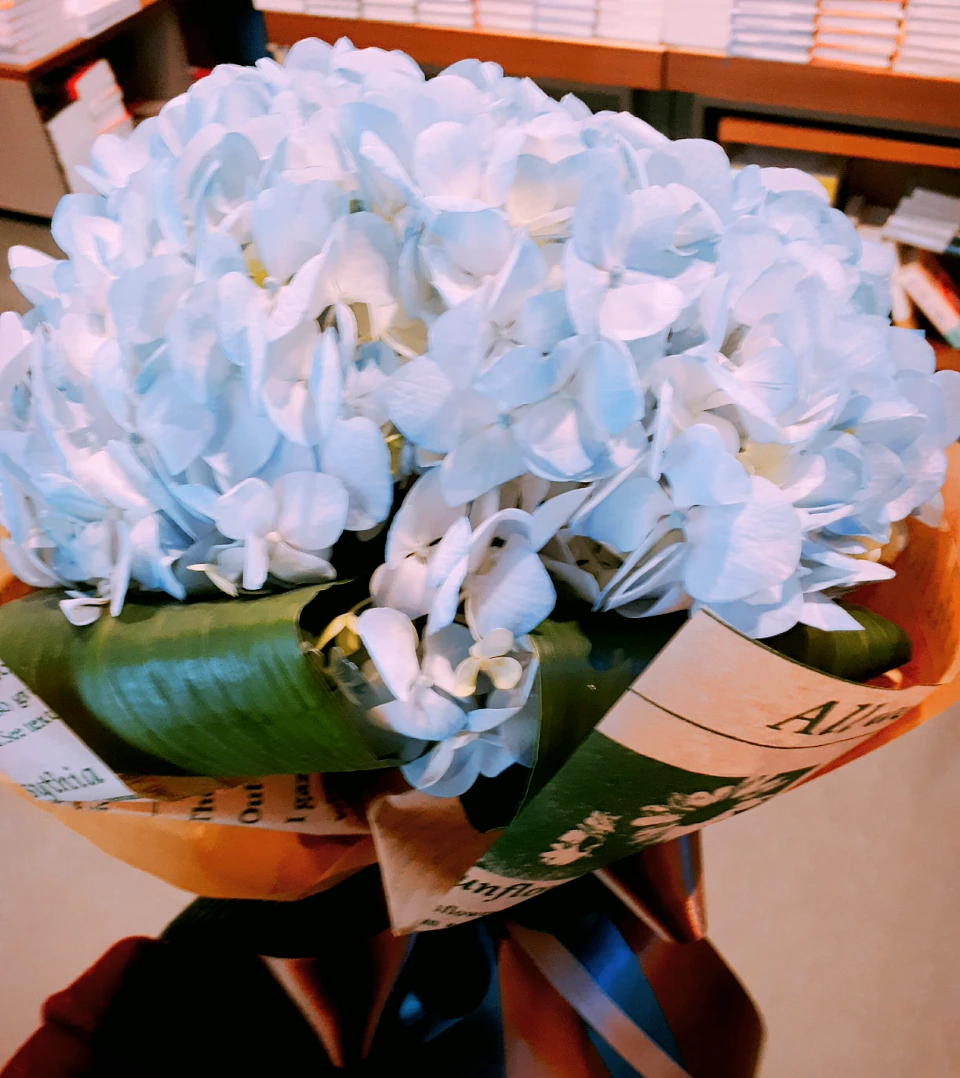 왠지 빈손이기 싫어서 꽃을 샀다.