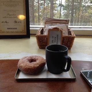 핀란드의 카페와 식당에서는 흔히 뷔페식으로 진열된 커피메이커를 볼 수 있다. 값을 지불한 뒤 원하는 만큼 커피를 따라 마시고 내열 유리로 된 커피 팟을 제자리에 두기만 하면 된다. 에스프레소 머신도, 멋진 라떼아트를 선보이는 바리스타도 보이지 않지만 일상에 공기처럼 스며들어 있는 커피의 따스한 기운을 느끼는 순간 이보다 커피를 사랑하는 나라도 없겠구나, 하는 확신이 온몸을 휘감는다. 브런치나 식사를 함께 제공하는 곳은 대부분 그런 식이지만 카페가 메인인 경우에는 서버가 직접 커피를 전달하는 곳도 많다. 카페 퓌니키가 그랬다. 일주일 남짓 탐페레와 헬싱키에 머무르며 크고 작은 카페들을 많이 들러봤지만 그중에서도 카페 퓌니키는 잊히지 않는다.